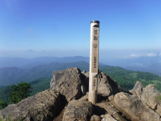 急坂を登りきると視界が一気に開けます。笠取山の頂上です・・と、この時は思いましたが実はこの先にまだ頂上がありました。 |