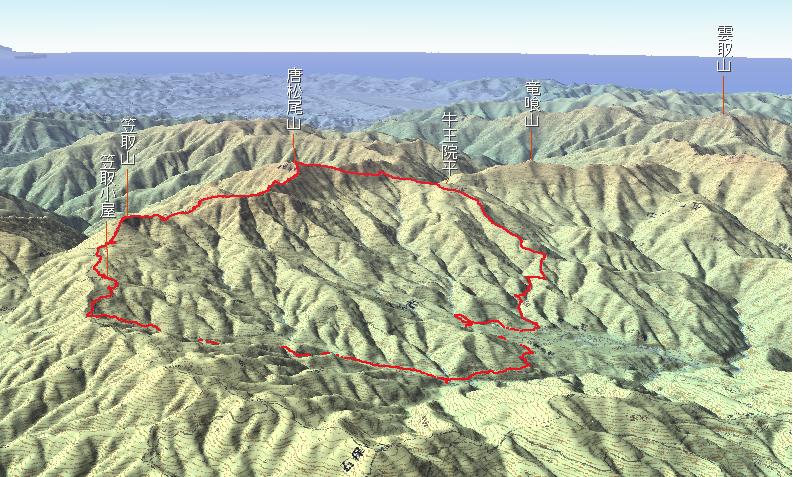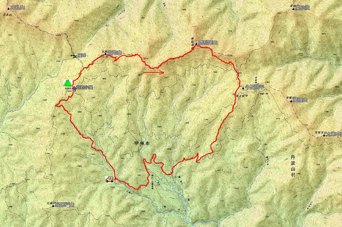 翌朝、7時ちょい前に出発。笠取山へ向かいます。 |