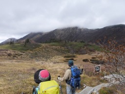 時々振り返ってみますが、やっぱり火打山は雲の中。 |