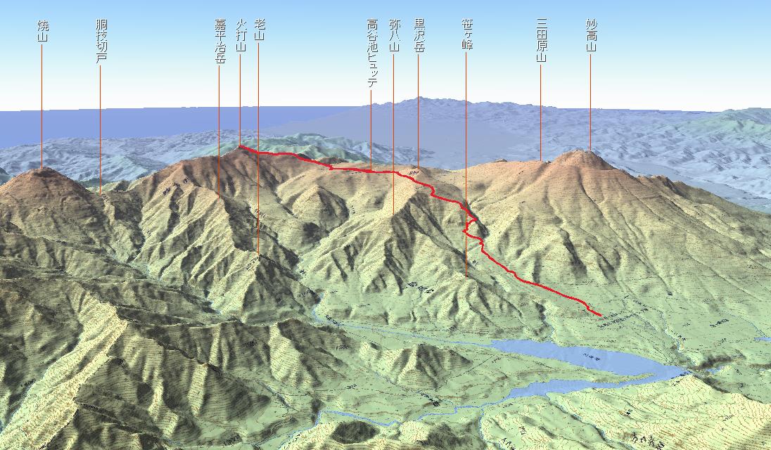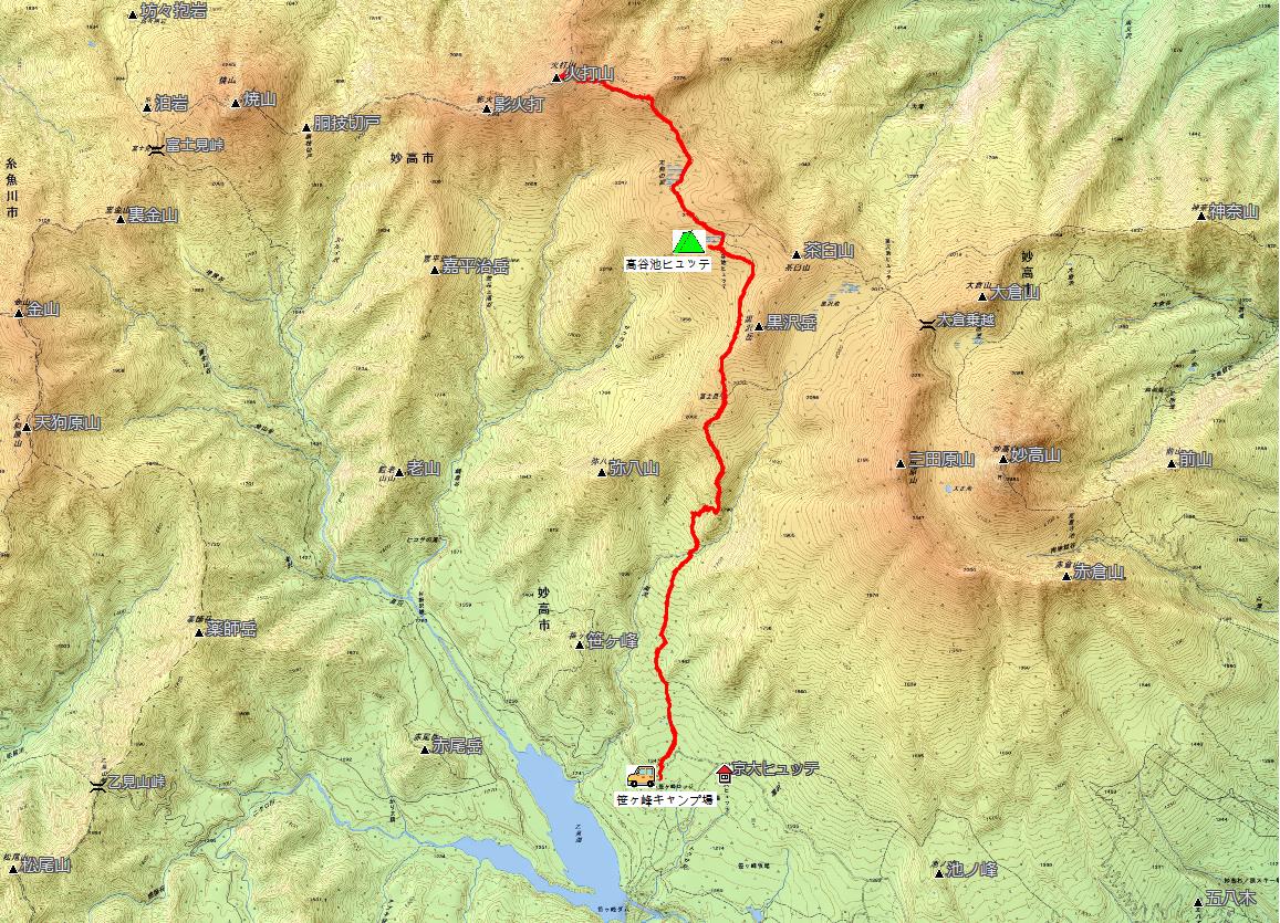 左の火打山方面へ向かいます。 |