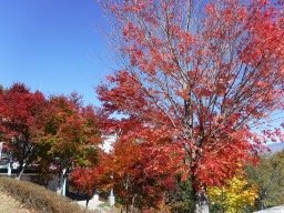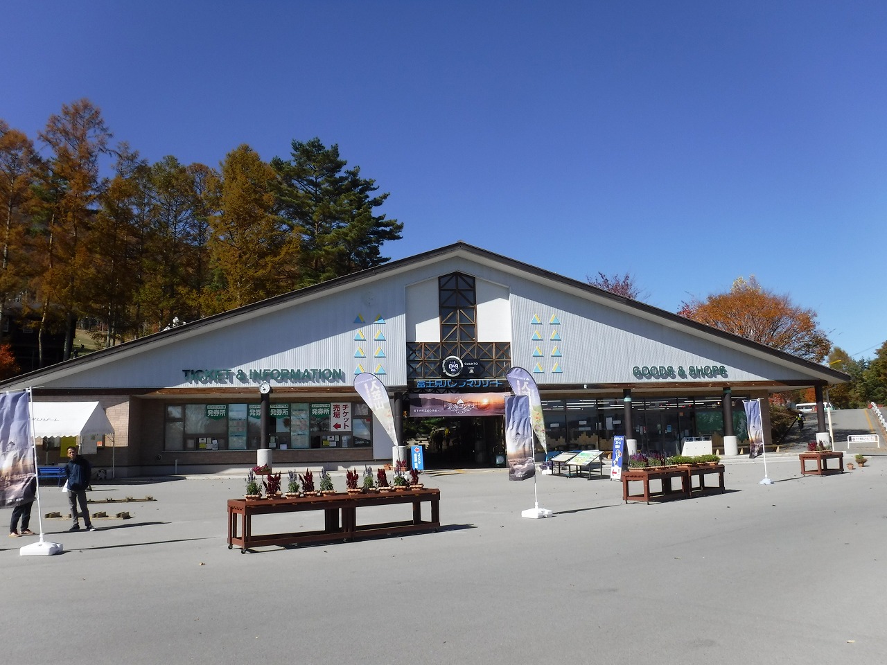 富士見パノラマリゾート駐車場に車をとめゴンドラ乗り場に向かいます、道路脇のイチョウの木も紅葉の真盛りでした。 |