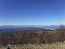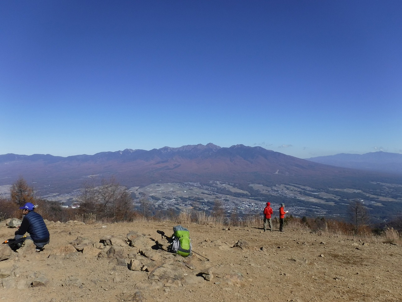 北アルプスから諏訪湖までよく見えます。槍穂高はもう雪化粧をしていました。 |