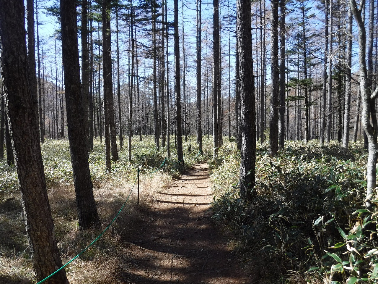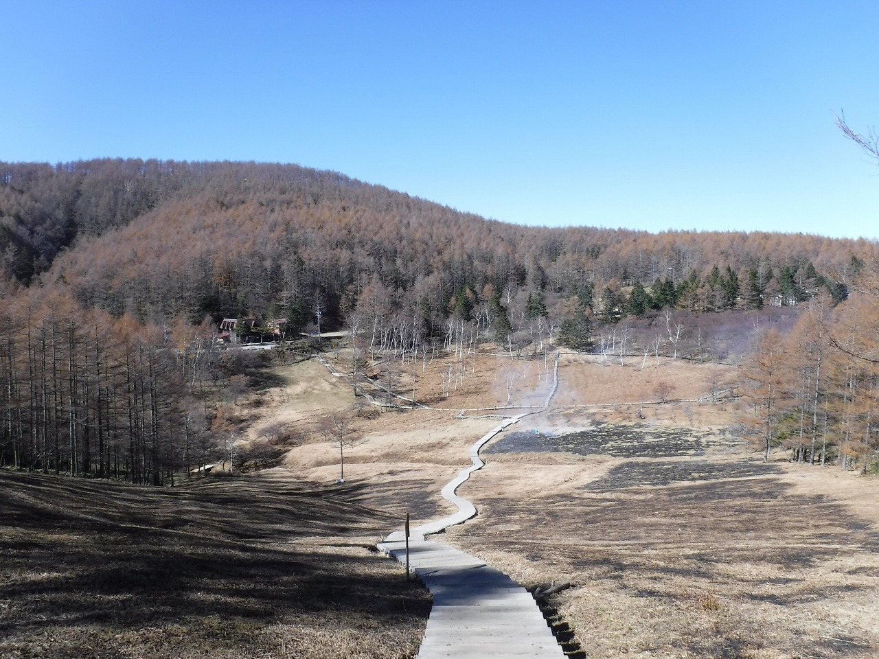 入笠湿原です。花が咲く時期になれば一面の花畑になるようです。ちょうど野焼きが行われていました。来年の準備でしょう。 |