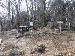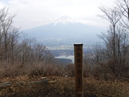 ほどなく山頂に到着します。広い山頂です。富士山方面の木々が刈り取られているので富士山を眺めるには最高のロケーションです。 |
