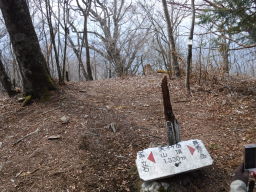 広い場所に着いたなって思ったら、ここが天子ヶ岳でした。近くに展望台と祠があるくらいで何もありません。 |