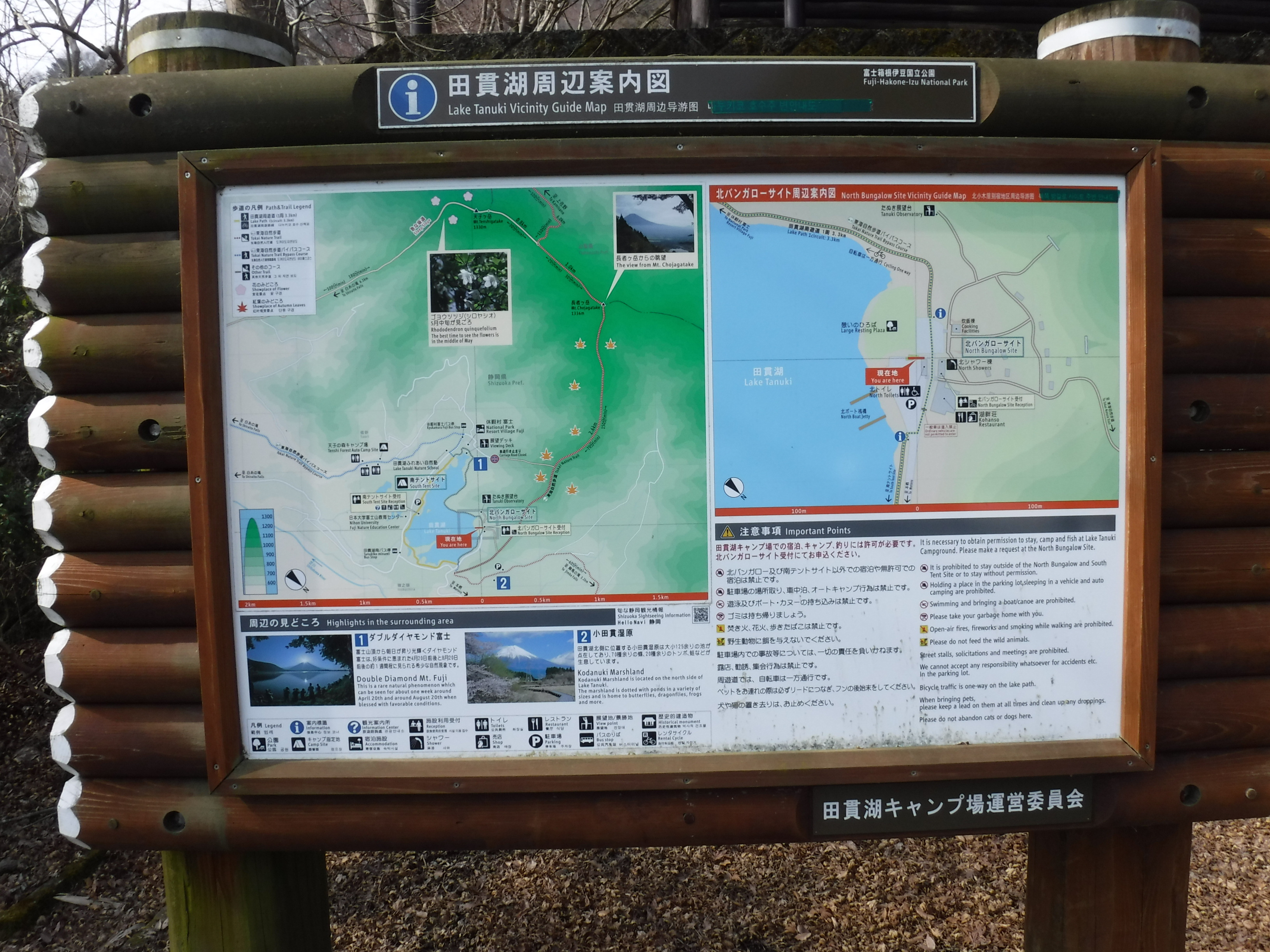 田貫湖の畔の田貫湖キャンプ場の駐車場です。広い無料駐車場です。 |