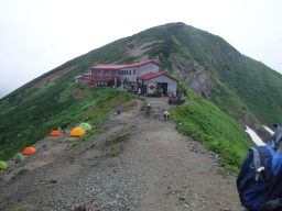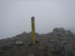 晴れマークを期待していたのですが、残念ながらガスガスです、とりあえずテントを置き去りにして山頂へ向かいます。 |