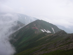 遠見尾根から何度も振り返るのですが、結局五竜岳全貌を見ることはありませんでした。 |