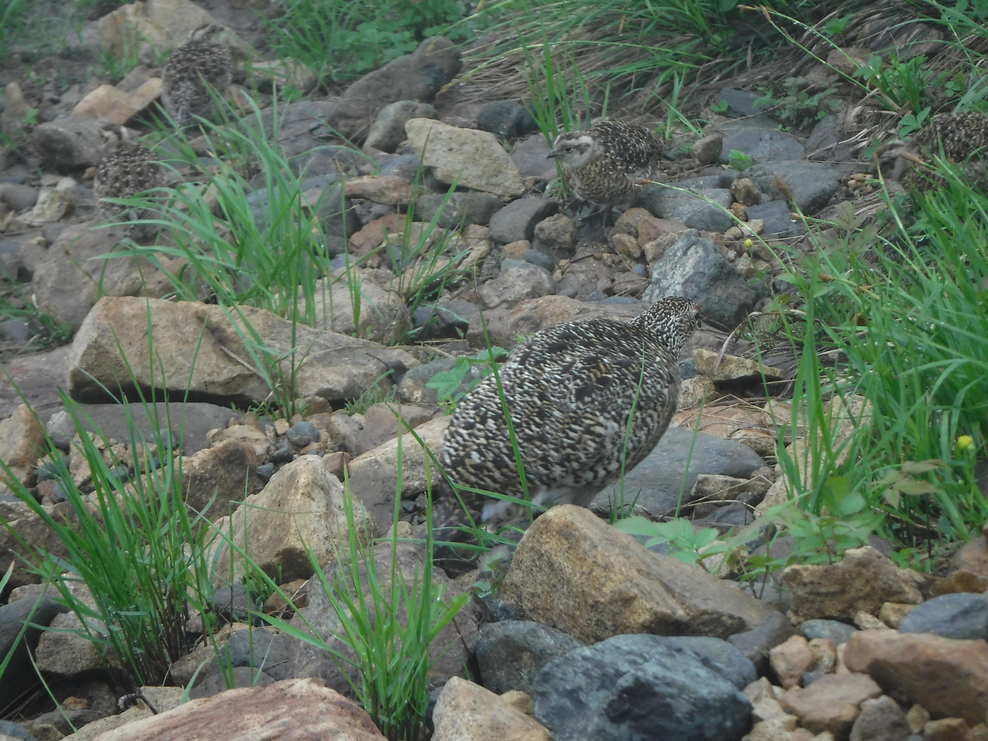 西遠見を過ぎしばらく上ったあたりで、ライチョウが現れました。天気が悪くガスっていたからでしょうね。 |