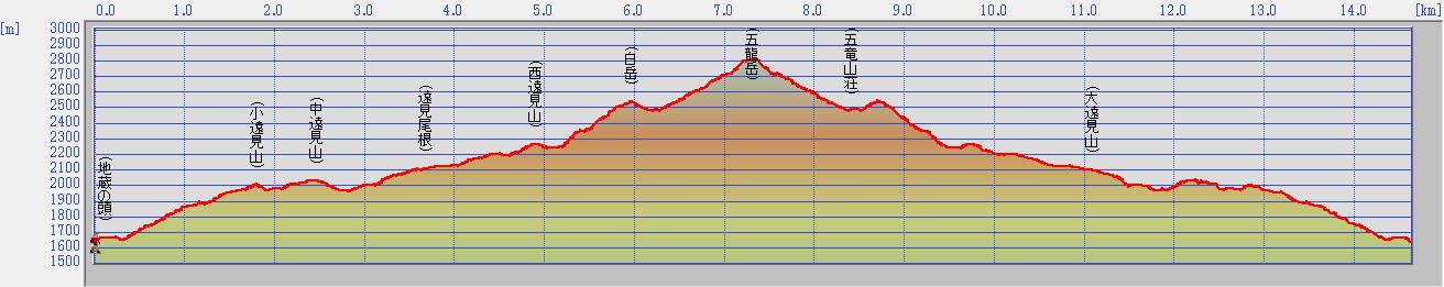 【1日目】 地蔵ノ頭09:15 〜 小遠見山10:50 〜 五竜山荘15:10
