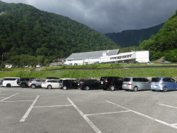 扇沢駅の駐車場です。手前の無料駐車場は満車で駐車できず、ここは24Hで¥1,000− この上の駐車場は12H ¥1,000−となってます。 |