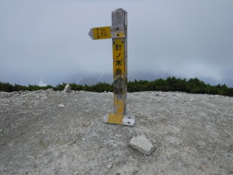 1時間ほどで針ノ木岳に到着。残念ながらガスってます。 |