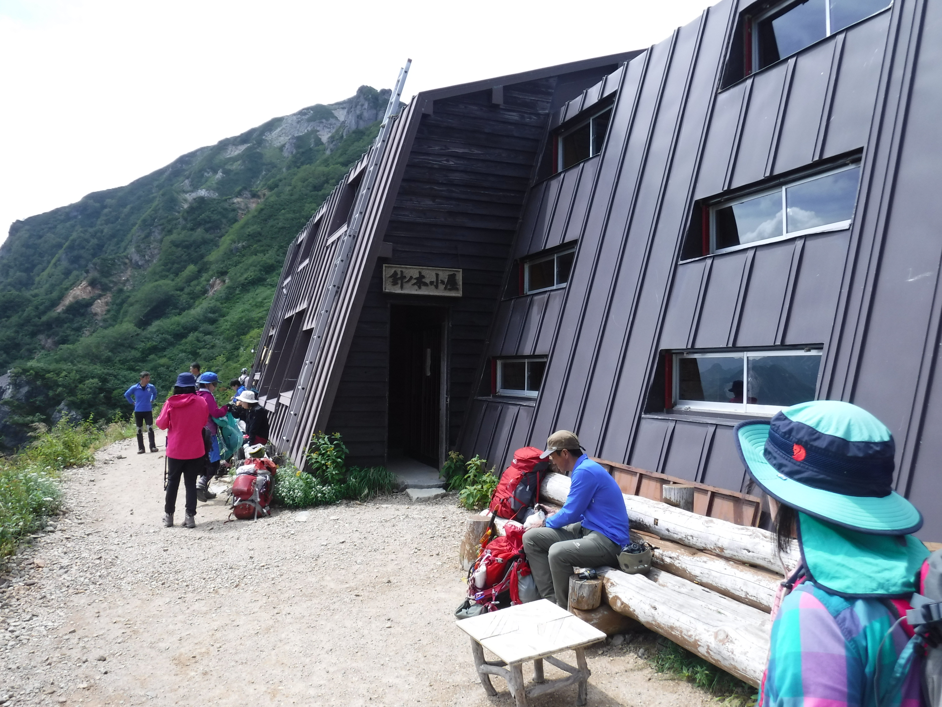 テント場は狭いと聞いていましたが、やはり狭かった。それでもなんとかギリギリの場所を確保して設営しました。この時期はいい場所は午前10時頃には着かないとダメらしいです。ここがいっぱいになると針ノ木岳方面に10分ほど登った場所に設営することになります。 |