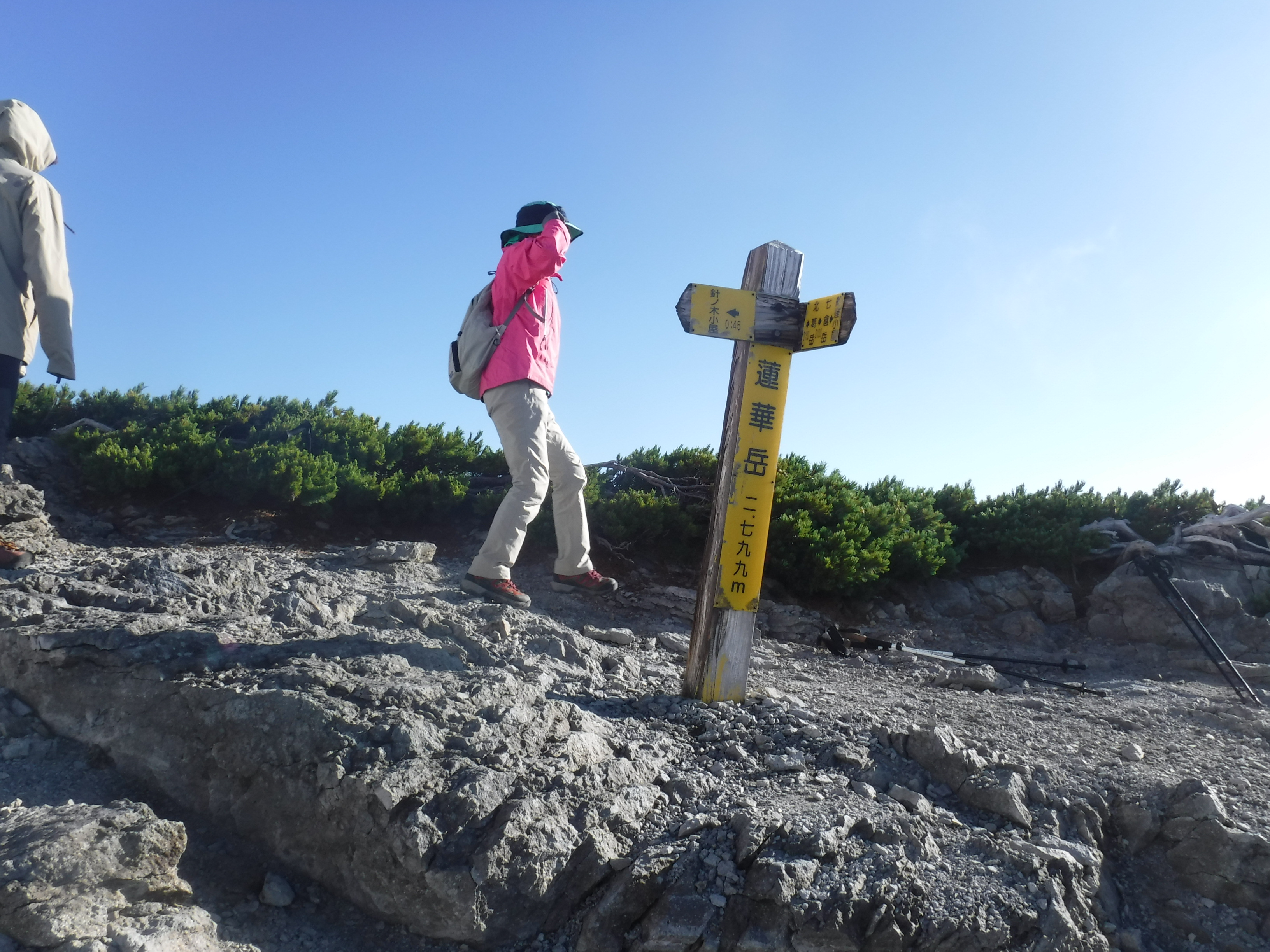 蓮華岳です。晴れてきたのですが、風が強くとにかく寒い。もうすこし居たかったのですが早々に下山しました。 |