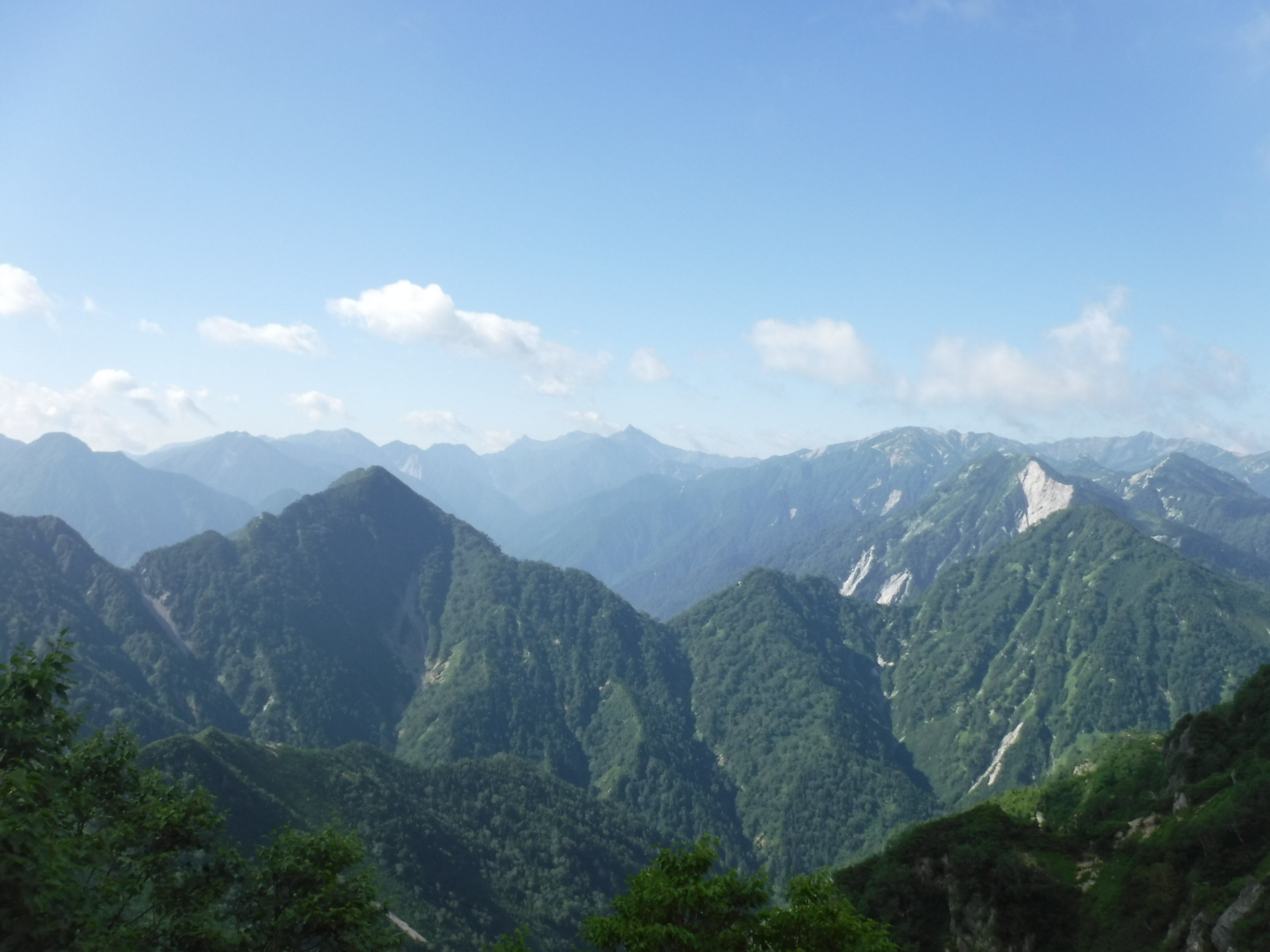 針ノ木峠からの眺望です。槍穂高がよく見えました。テントを片付けて同じ道を下山しました。 |