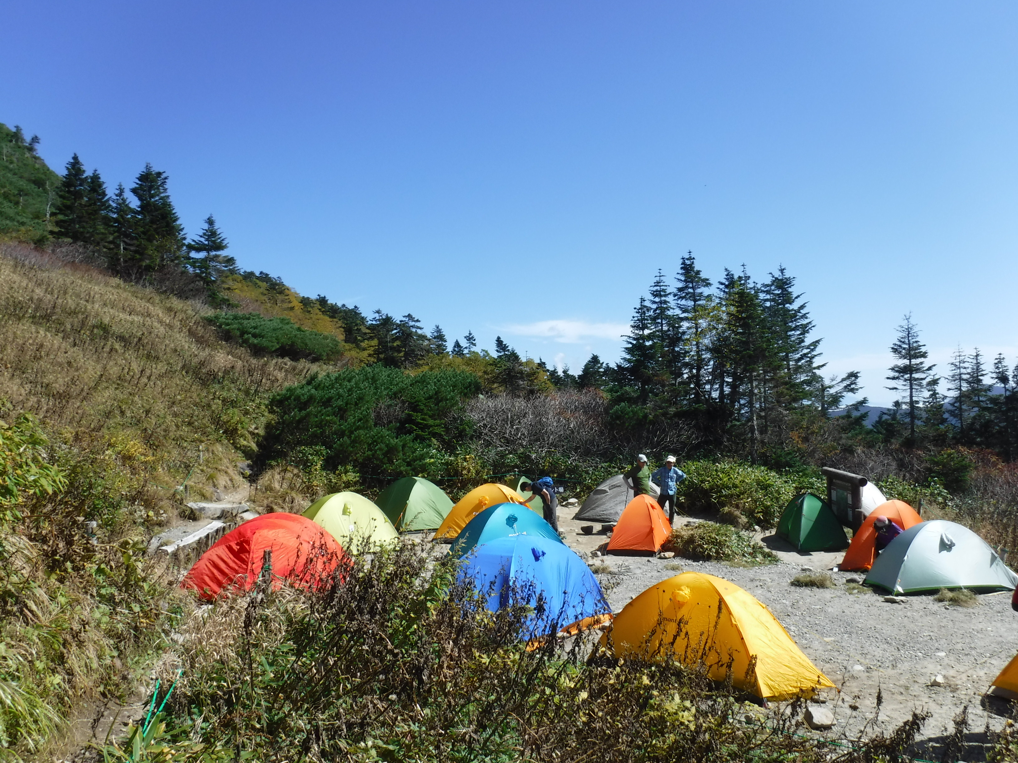 テント場も混みあっていましたが、なんとか場所も確保できました。 |