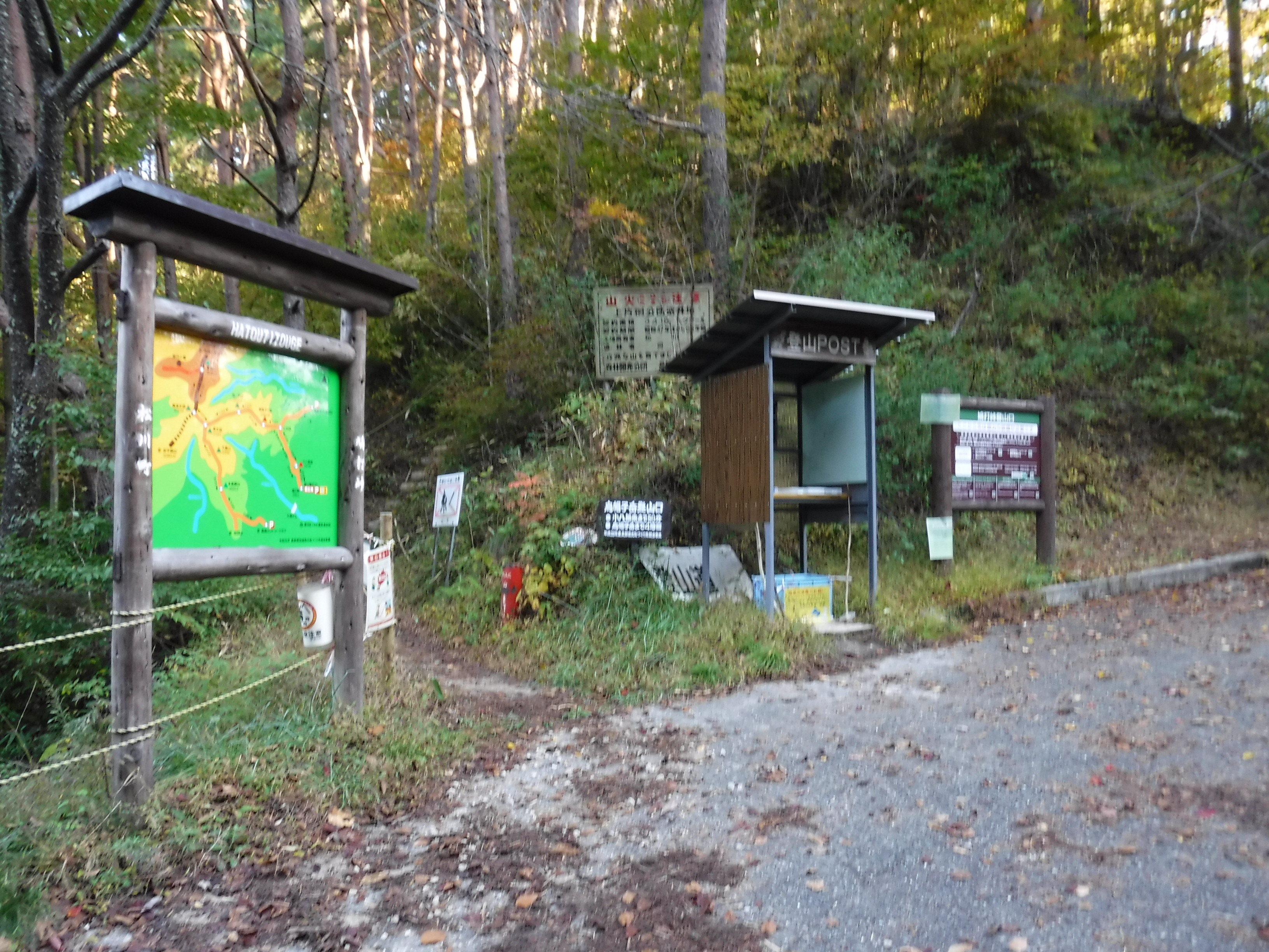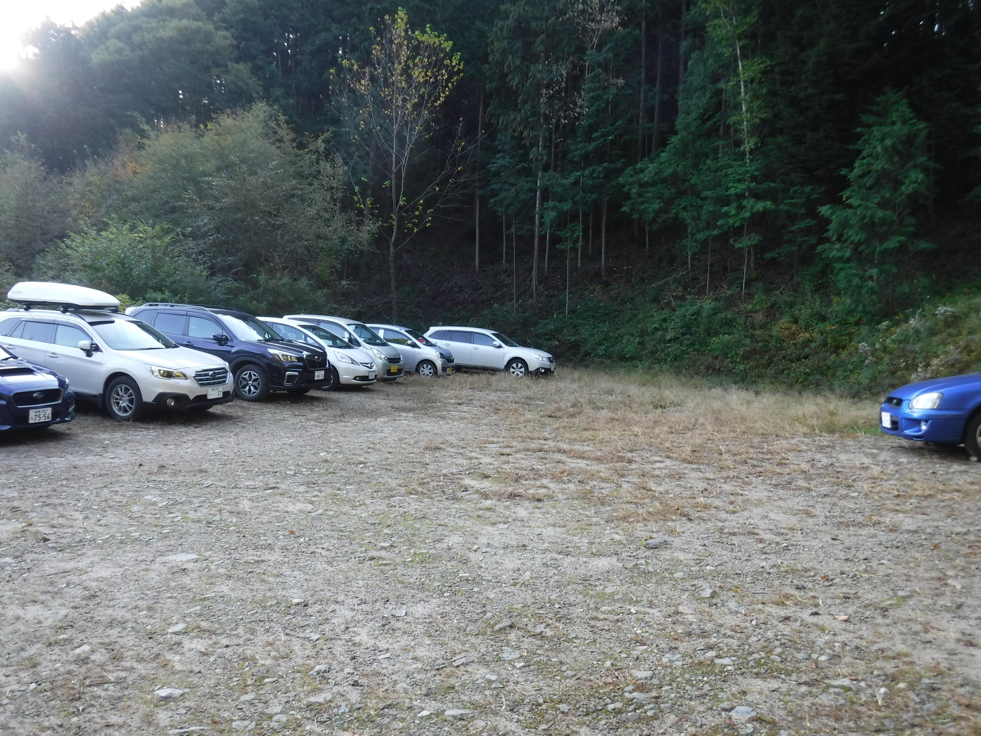 松川ICから15分ほどで鳩打峠駐車場に着きます。朝7:30で10台ほどの車の数です。 |