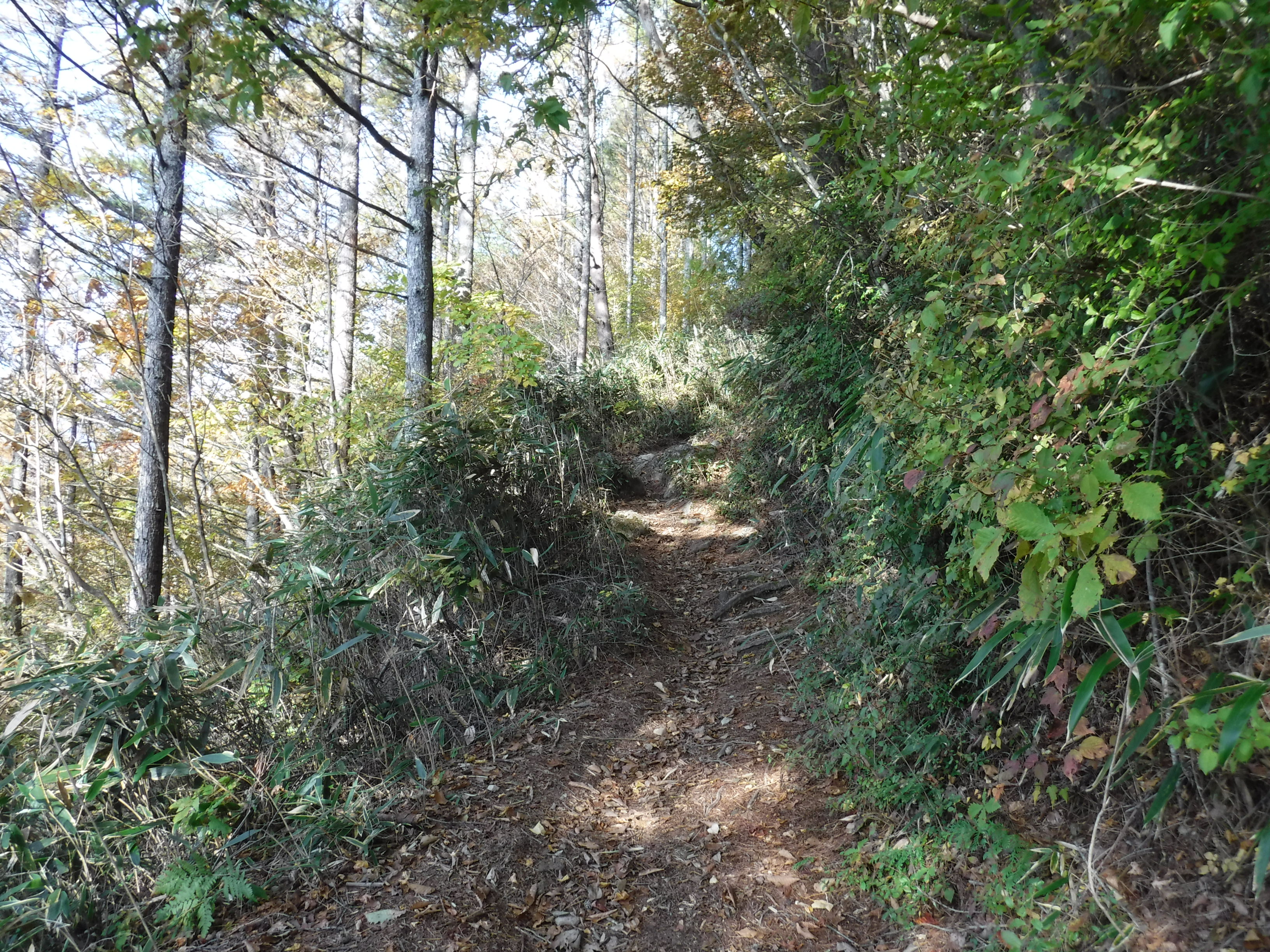 烏帽子岩の下、巻道と直登の上級者コースが分かれています。頑張って直登コースへ。 |