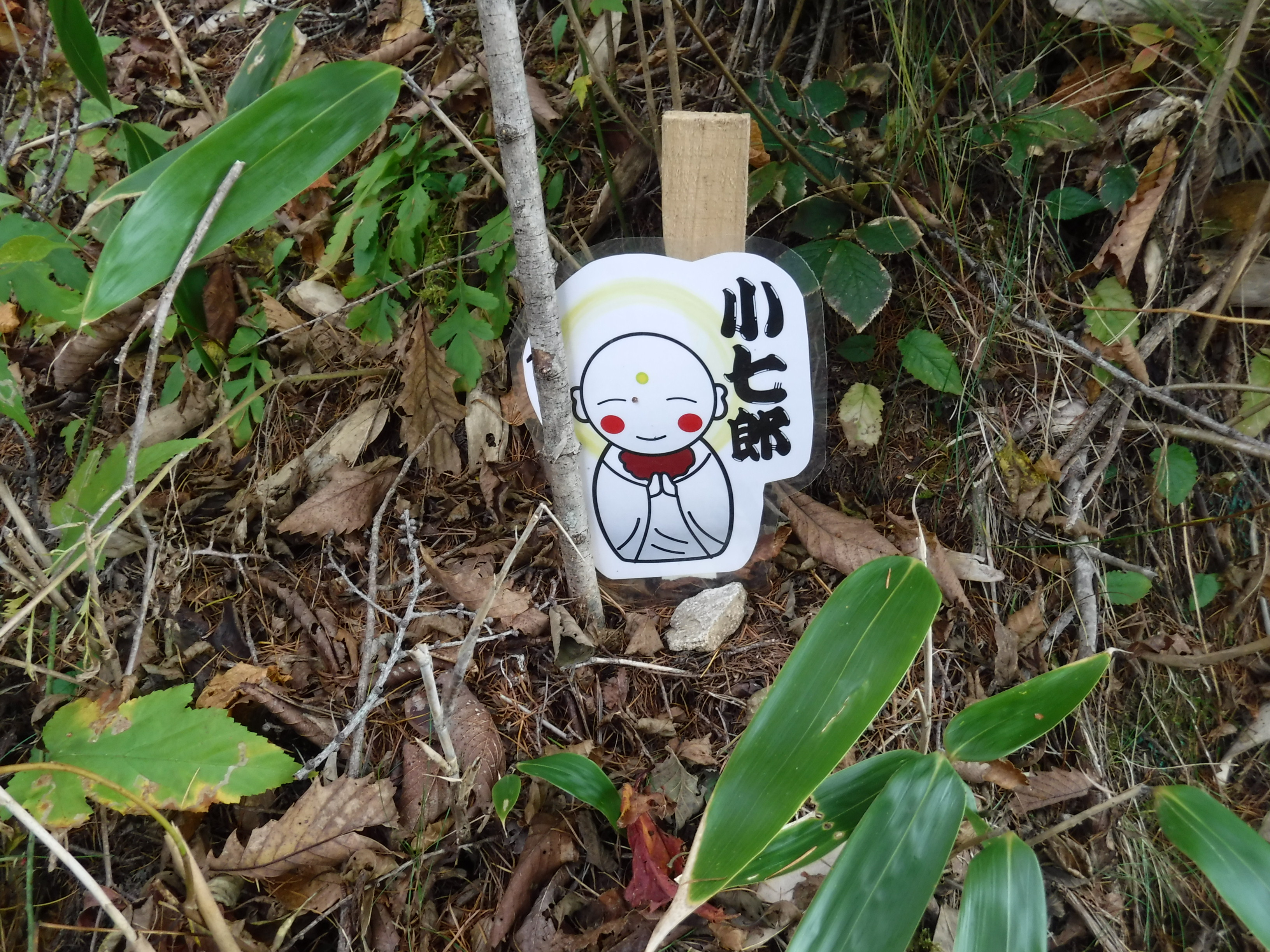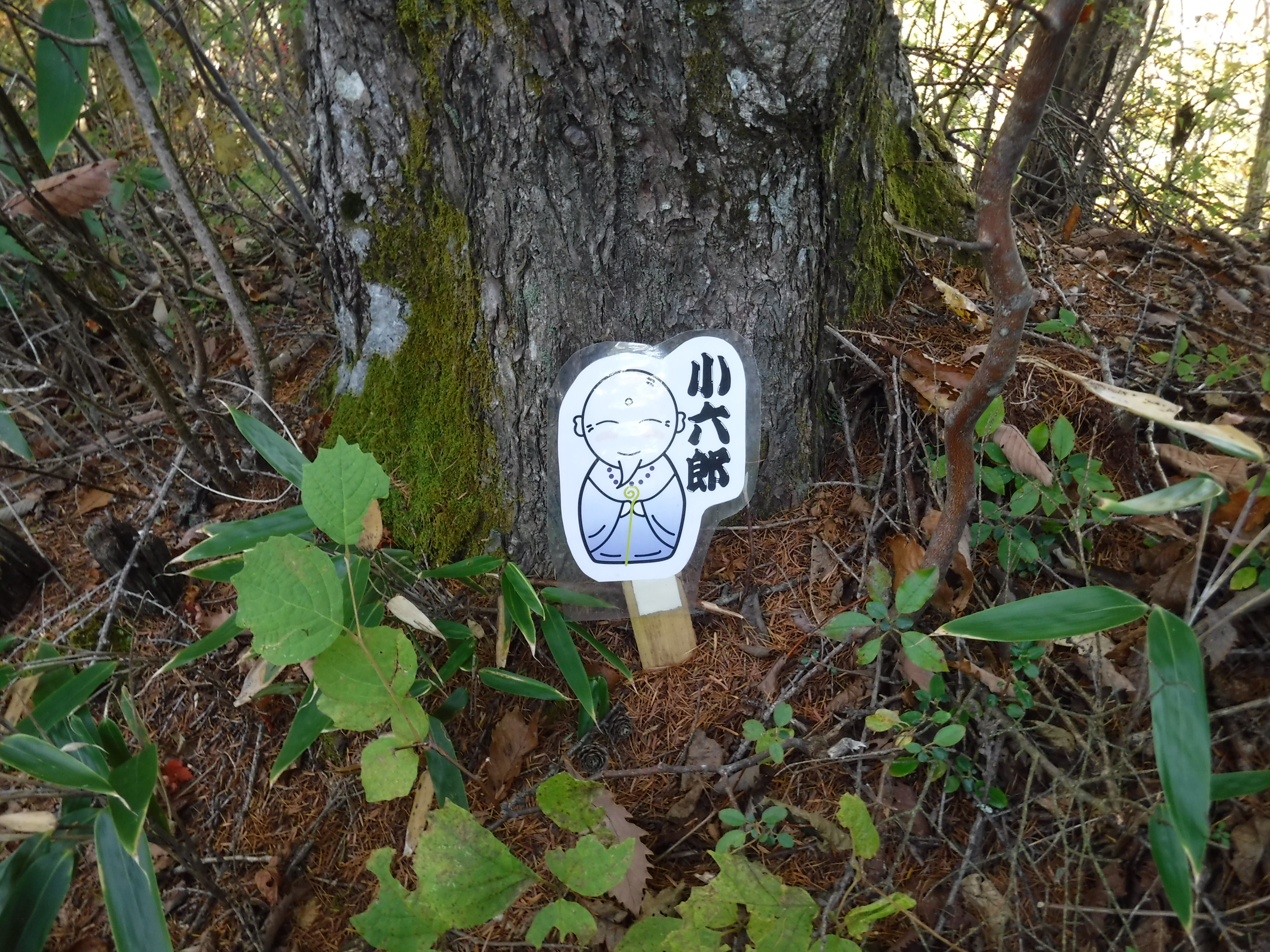 歩き始めてすぐに目に留まるのがこれ! 小八郎岳までの道しるべです。最初は分からなかったのですが何気なく描かれている絵が人生そのものでした。 |
