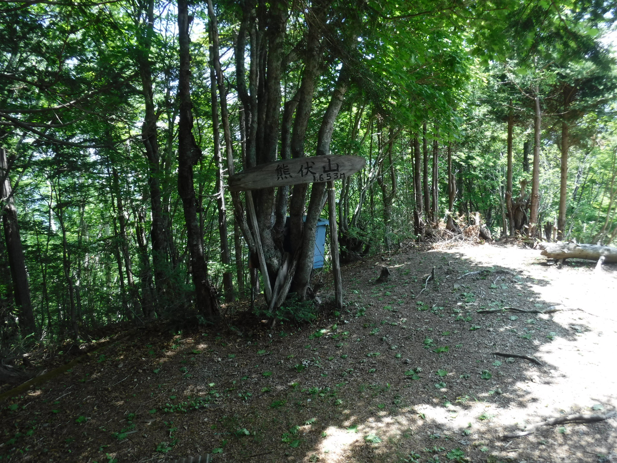 ほどなく熊伏山山頂に到着。広い山頂です。風が心地よく快適だったのですがハエが多いのが残念でした。 ここでアキラ君のお腹にマダニが食いついているのが発覚! ヒル除けスプレーや吸引スポイトでなんとか取ることができました。(翌日念のため皮膚科に行って抗生物質もらったそうです)どこで付いたのかはわかりませんが注意しましょう。