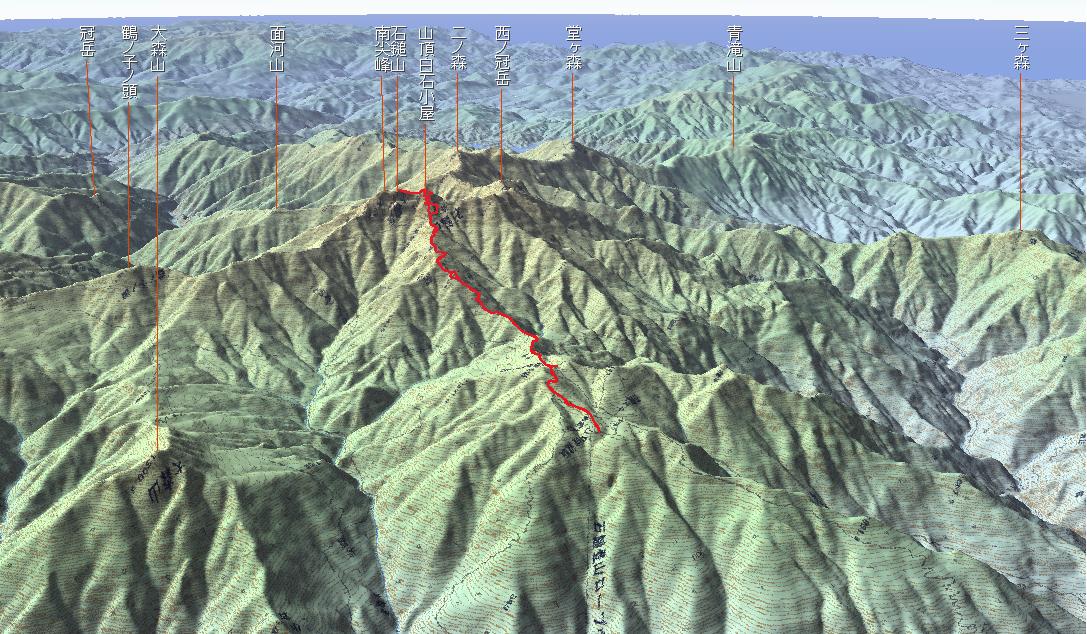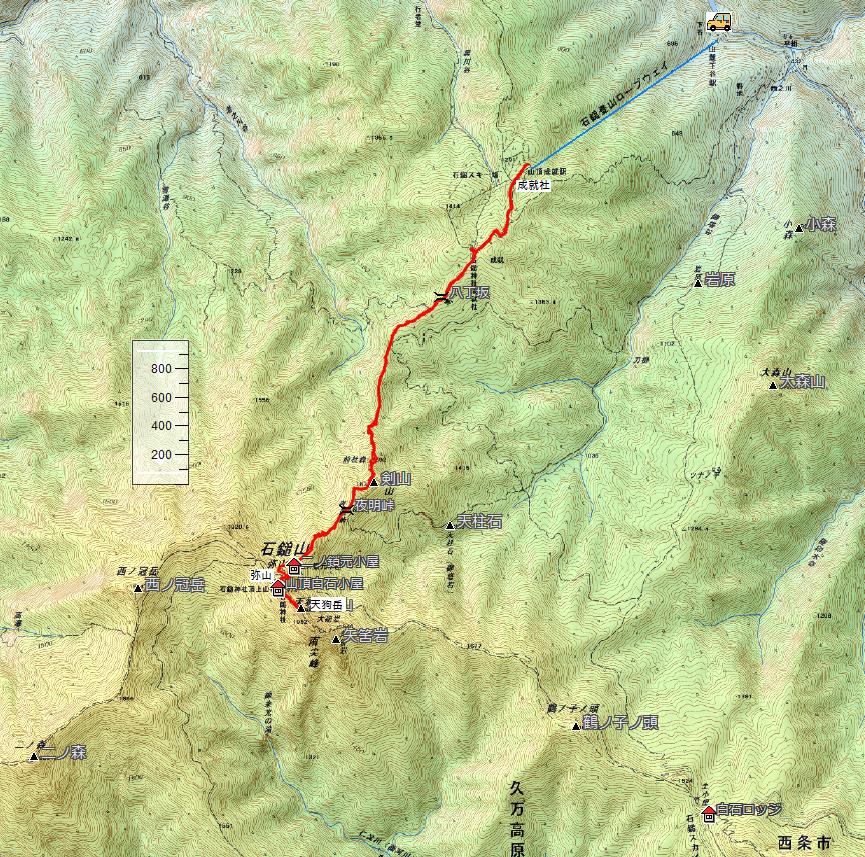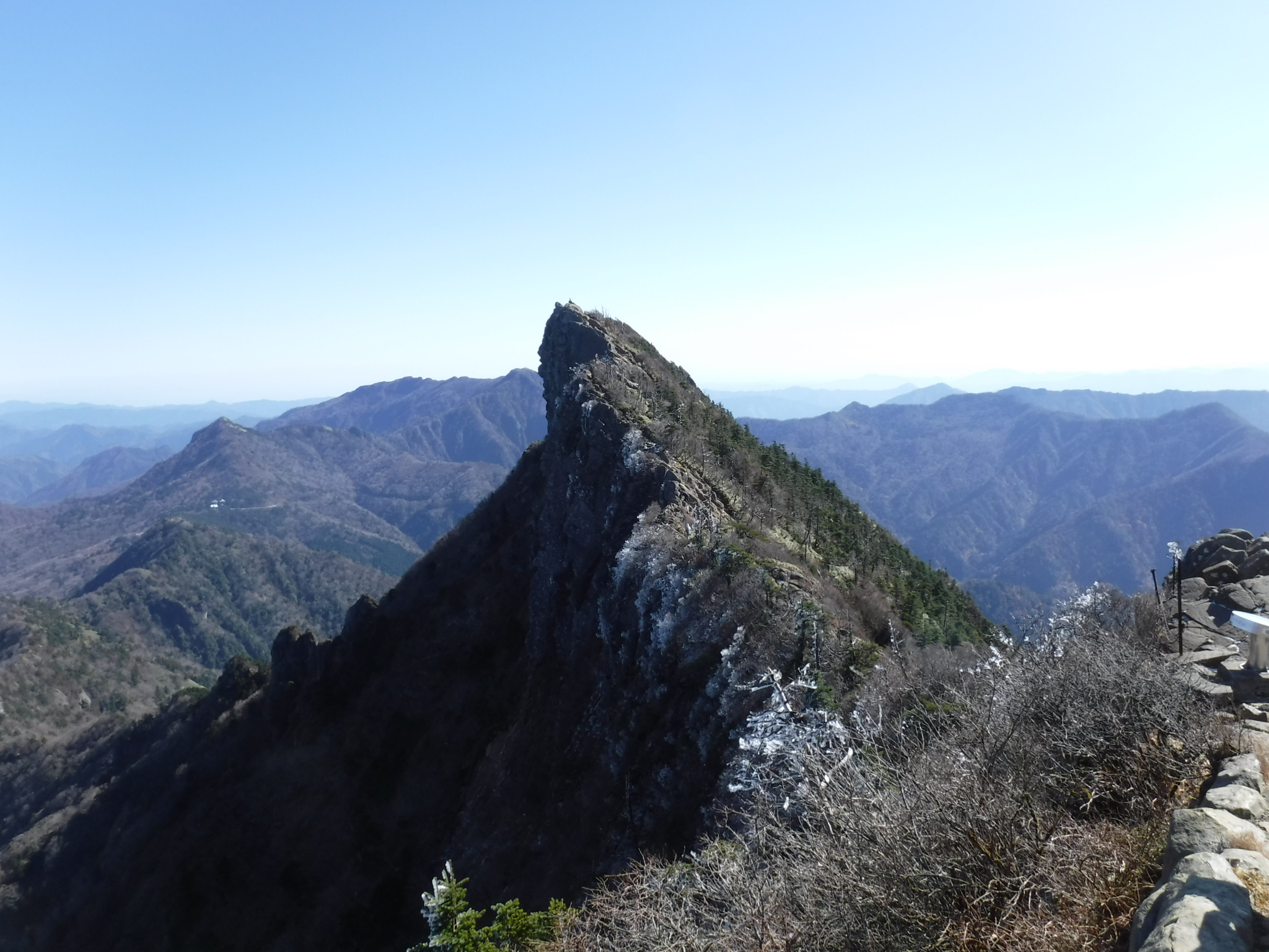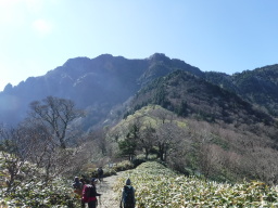 夜明し峠付近、前方に石鎚山がくっきりと見えてきます。 |