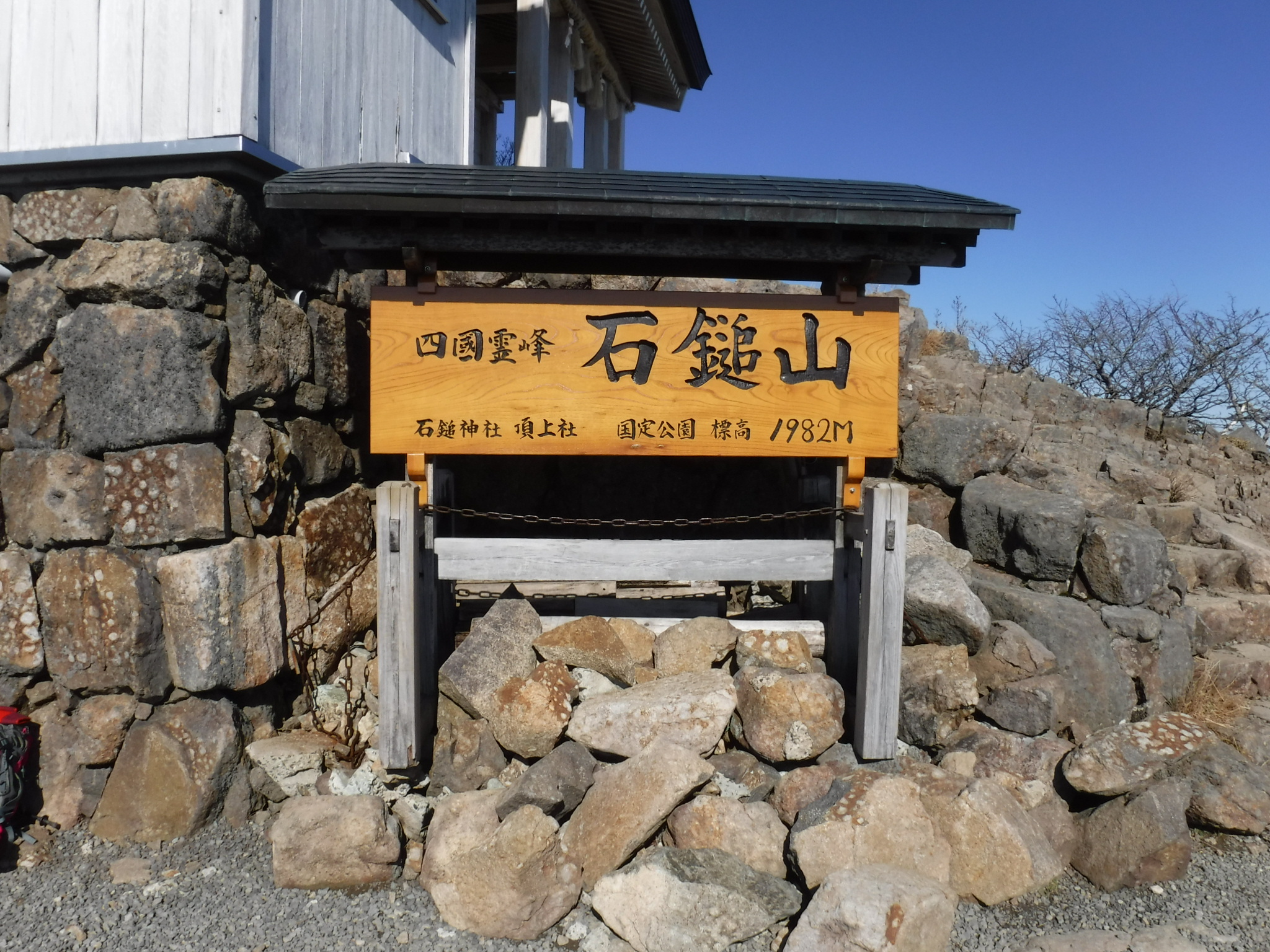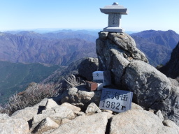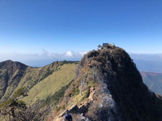 鎖を登りきるとそこが石鎚山(弥山)の山頂です。 |