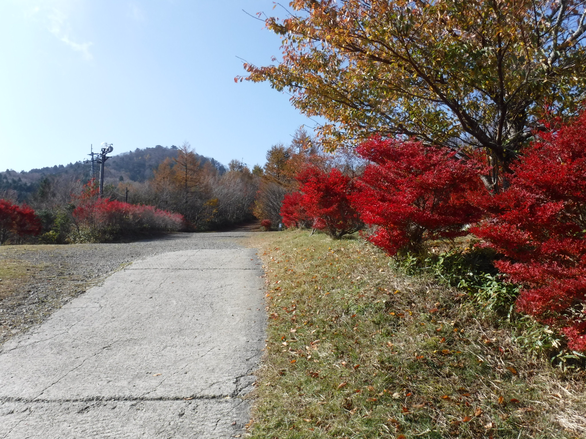 ロープウェイを降りて歩き始めます。このあたりの紅葉は見頃でした。 |