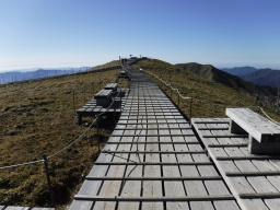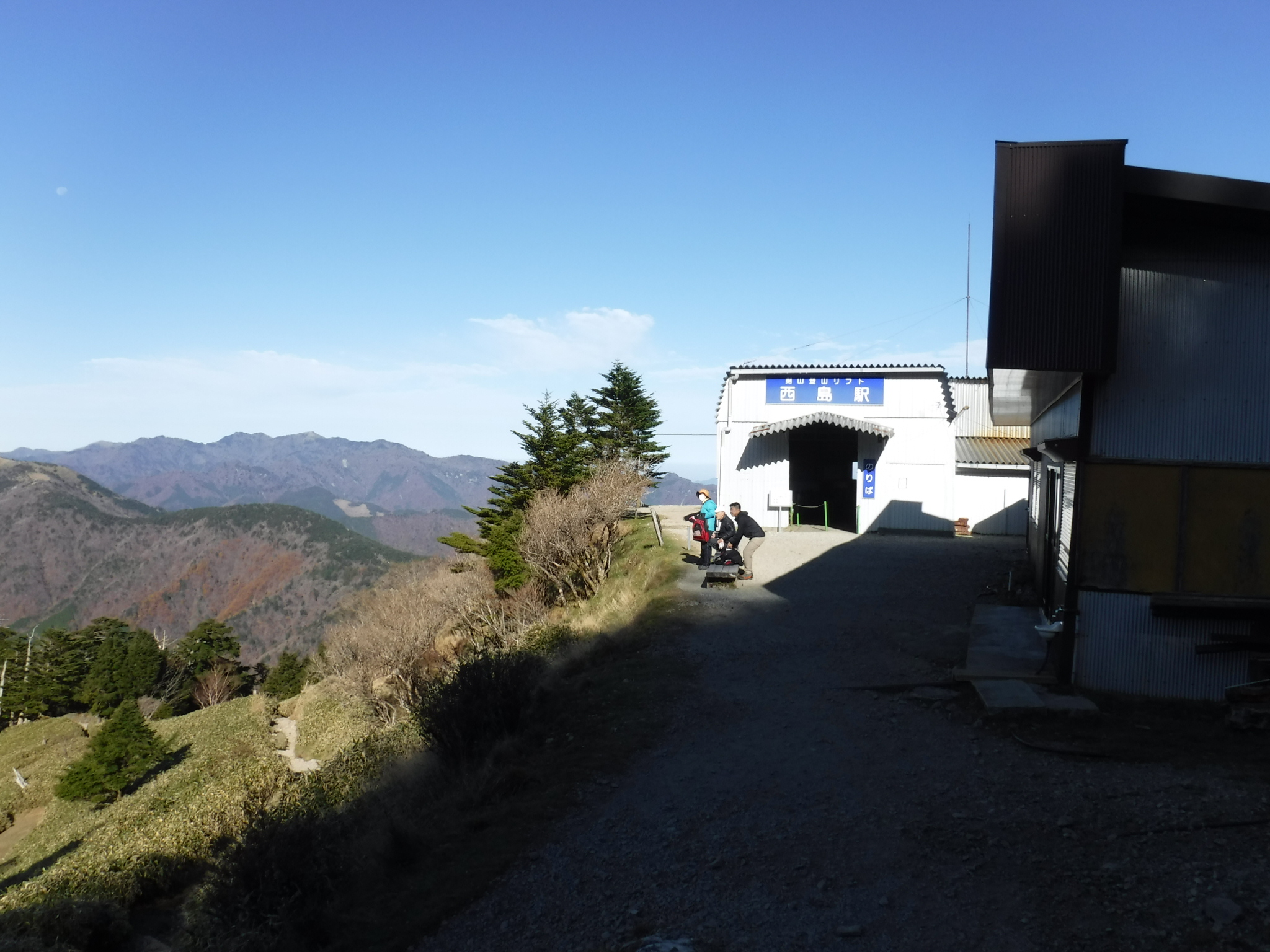 リフトの終着、西島駅です。 ここからもいくつかの登山道に分かれます。尾根道コースを登って、遊歩道コースを下ることにしました。 |