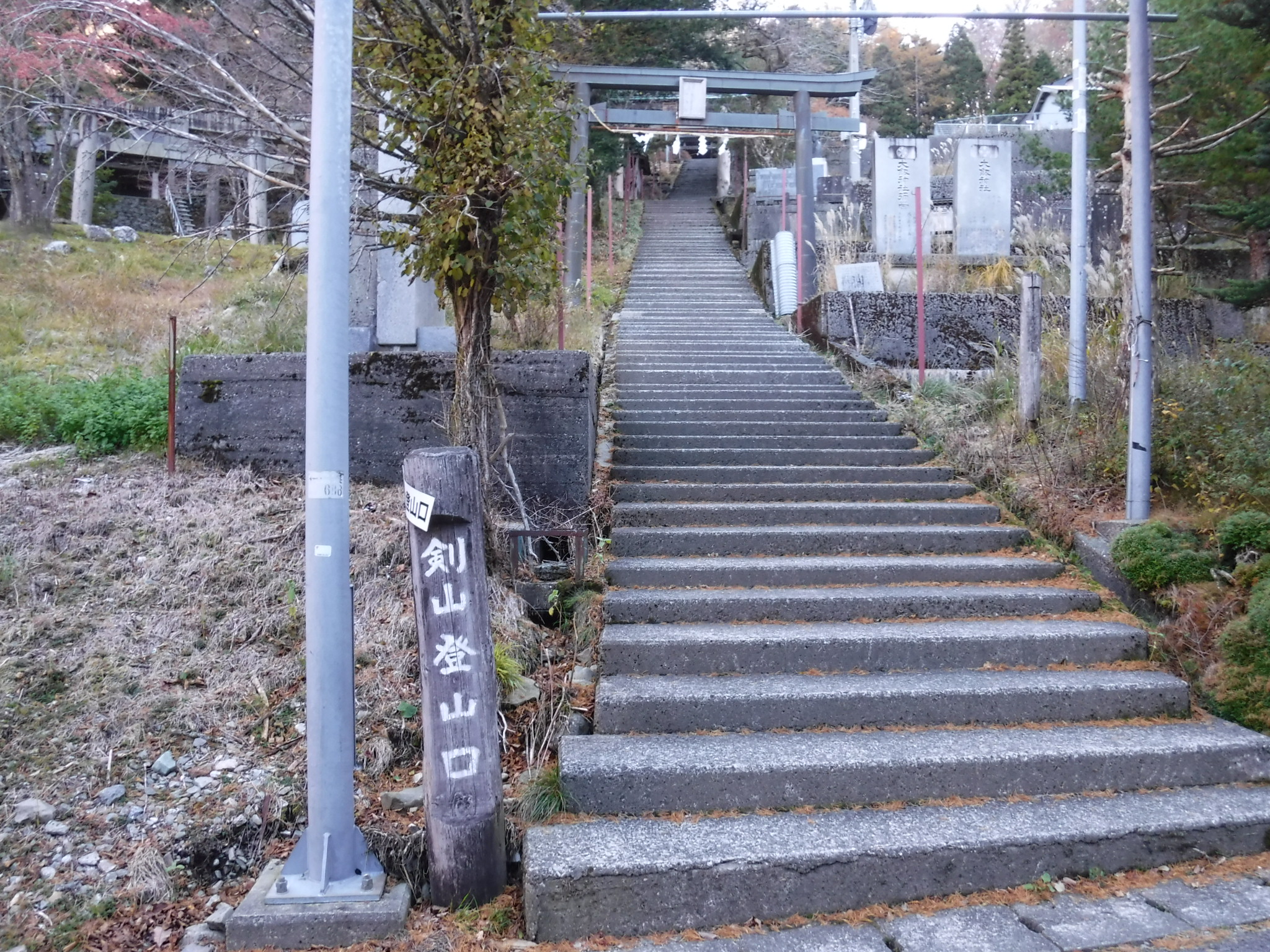 ちょっと下ったところにある剱神社が登山口になります。つるぎの字が違うんですね。 |
