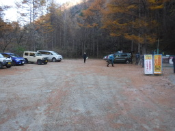 園原ICから広河原に向かうと一般車通行止めになり、そこが駐車場になっています。遠いところからのナンバーがずらり。さすが百名山です。 |