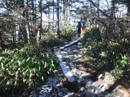 しばらく急坂が続きます。それが終わると笹原が現れます。 |