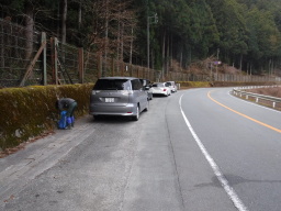 国道152号脇の駐車場に車を停めます。三連休最終日の朝7時半4台ほどの車が止まっていました。寒いので暖かい格好してスタートです。 |
