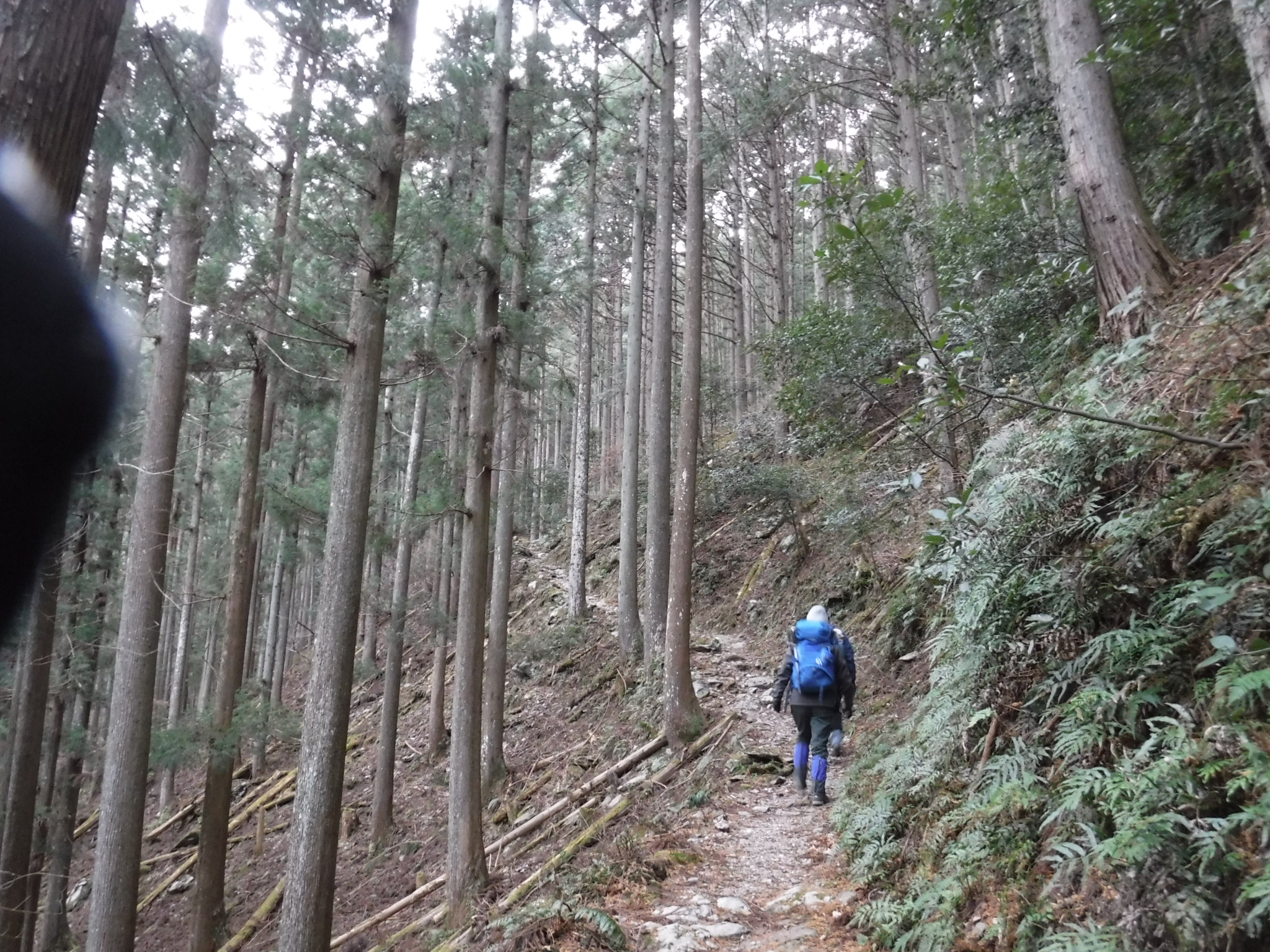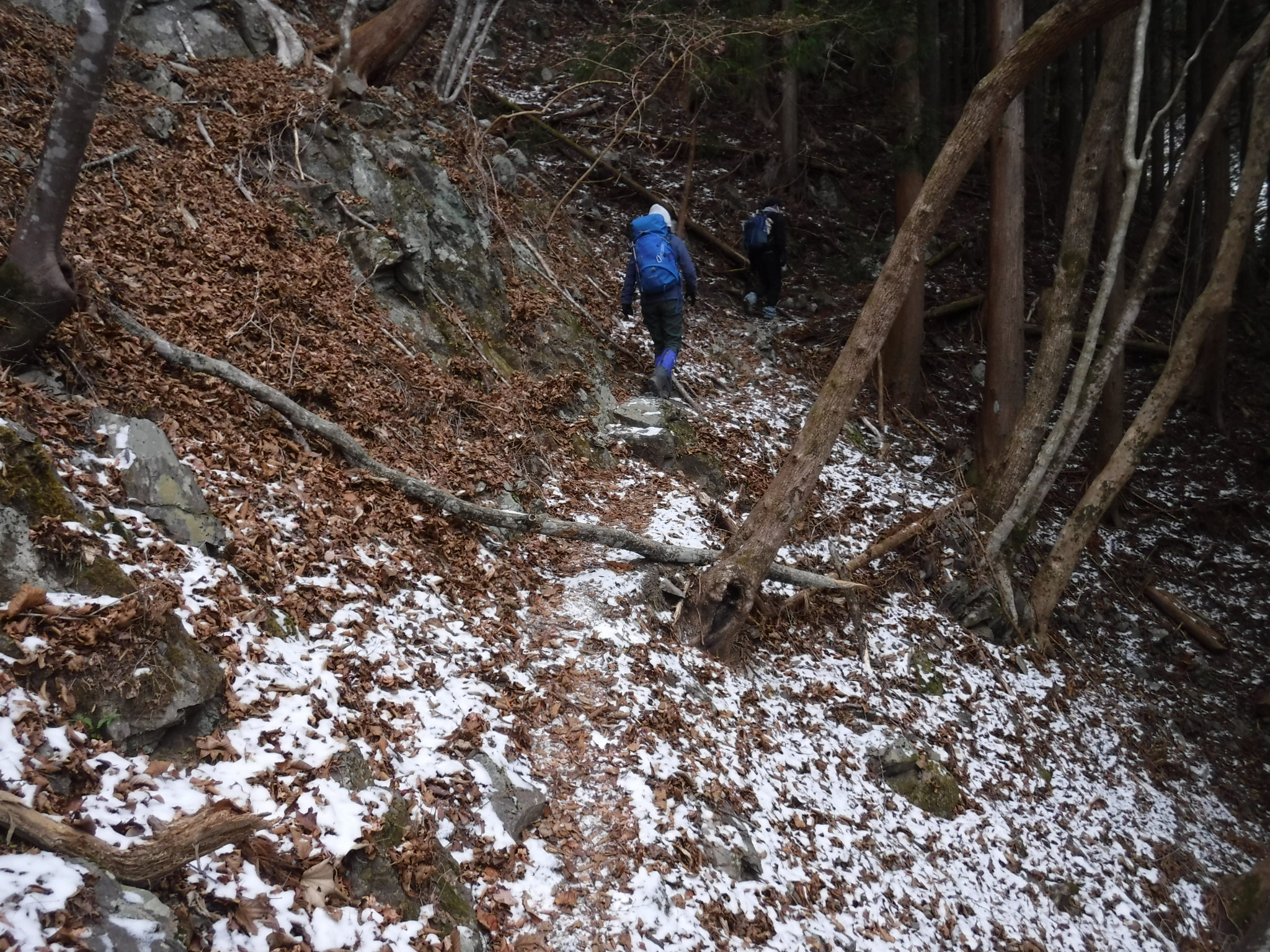 ところどころに倒木があるものの歩きやすい登山道を登っていきます。 |