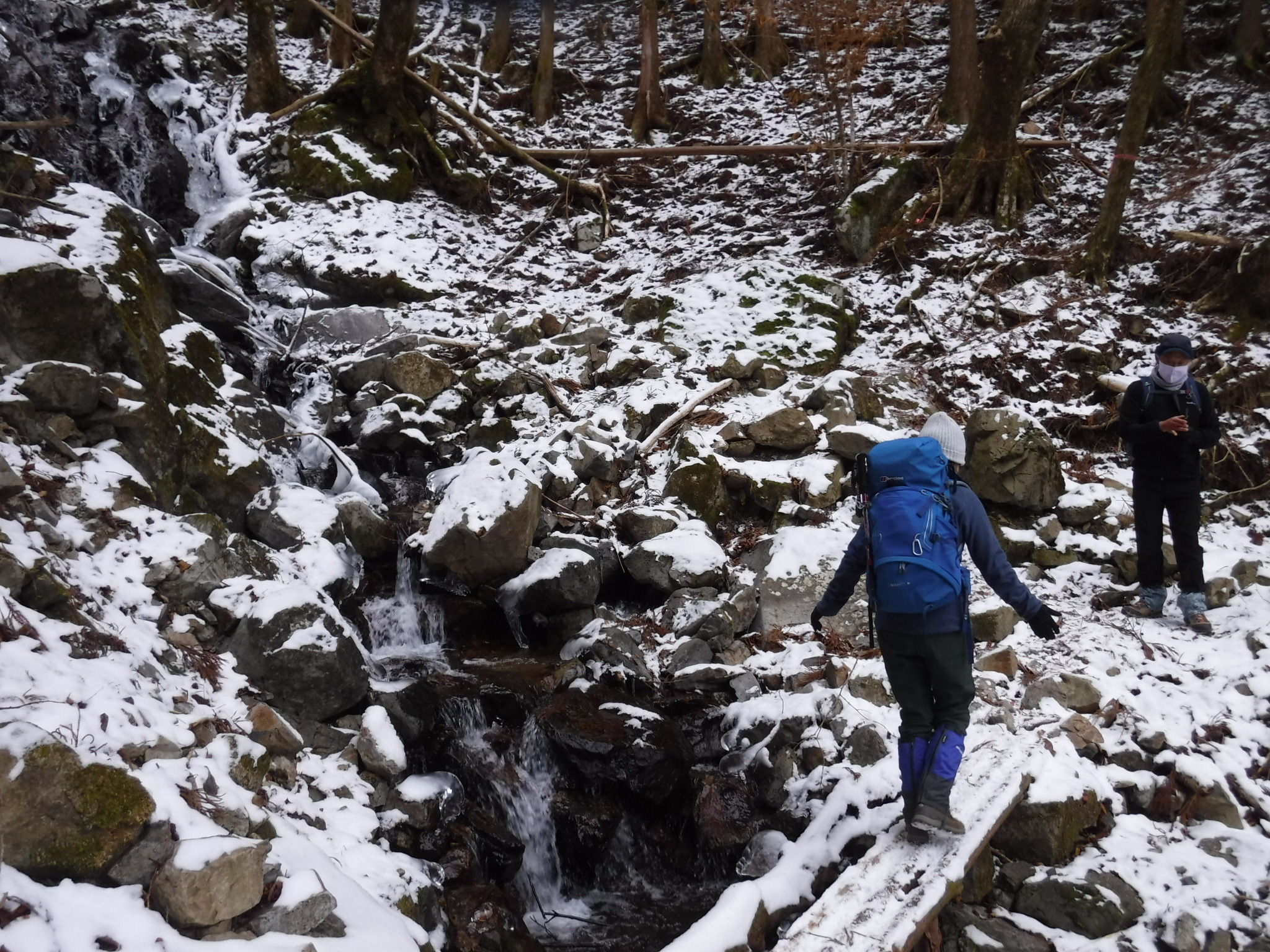 1時間ほどで青ナギと呼ばれる場所に到着。地図をみるといくつかの登山道が交わる場所ですが現在は単なる通過点です。ここでお菓子を食べて一休み。 |