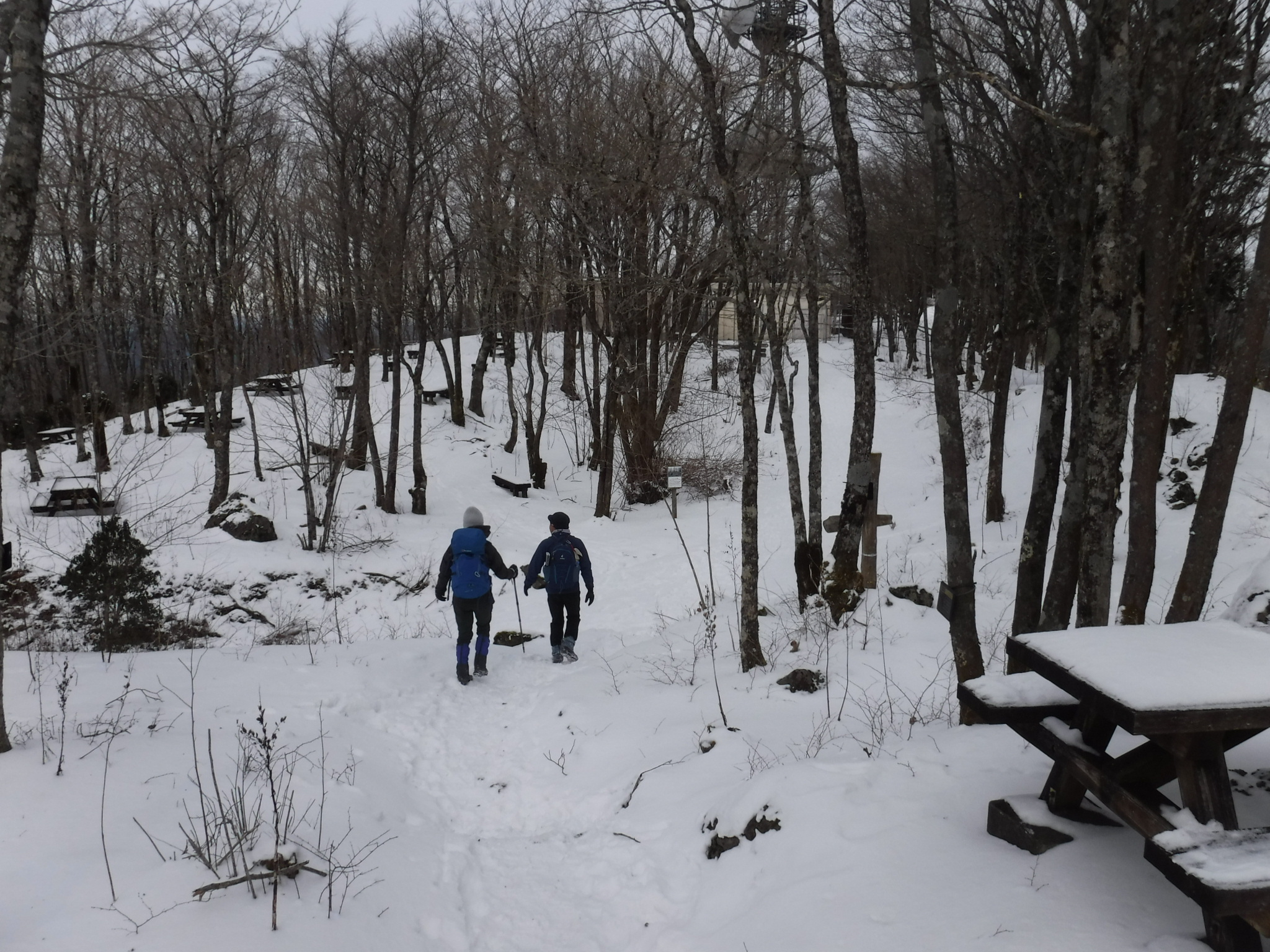 標高800mぐらいでだんだんと白いものが目立ち始めました。 |