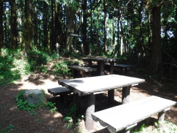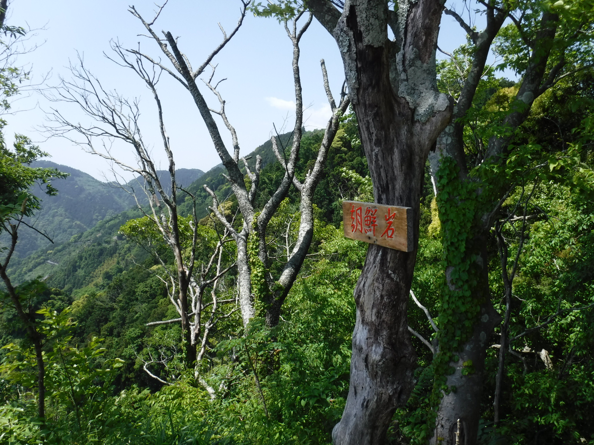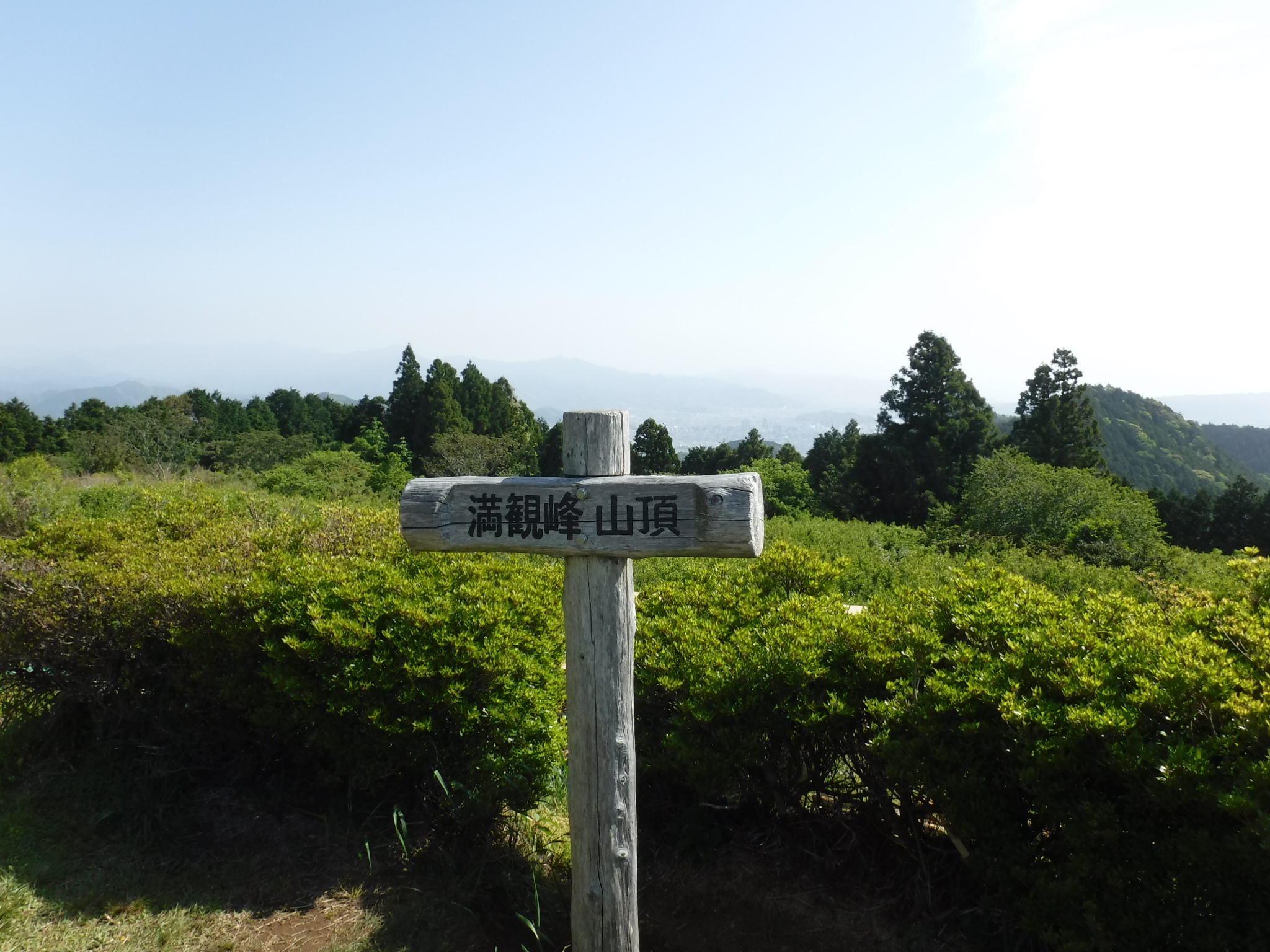 一旦、満観峰の戻り、そこで昼食。それから花沢山に向かいます。この写真はその途中の「日本一の展望地」って書いてある場所からのものです。残念ながら富士山は霞んでいて見えませんでした。 |