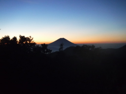 1時間ほどで、小高い富士見平に到着。富士山がきれいなシルエットを描いています。 |