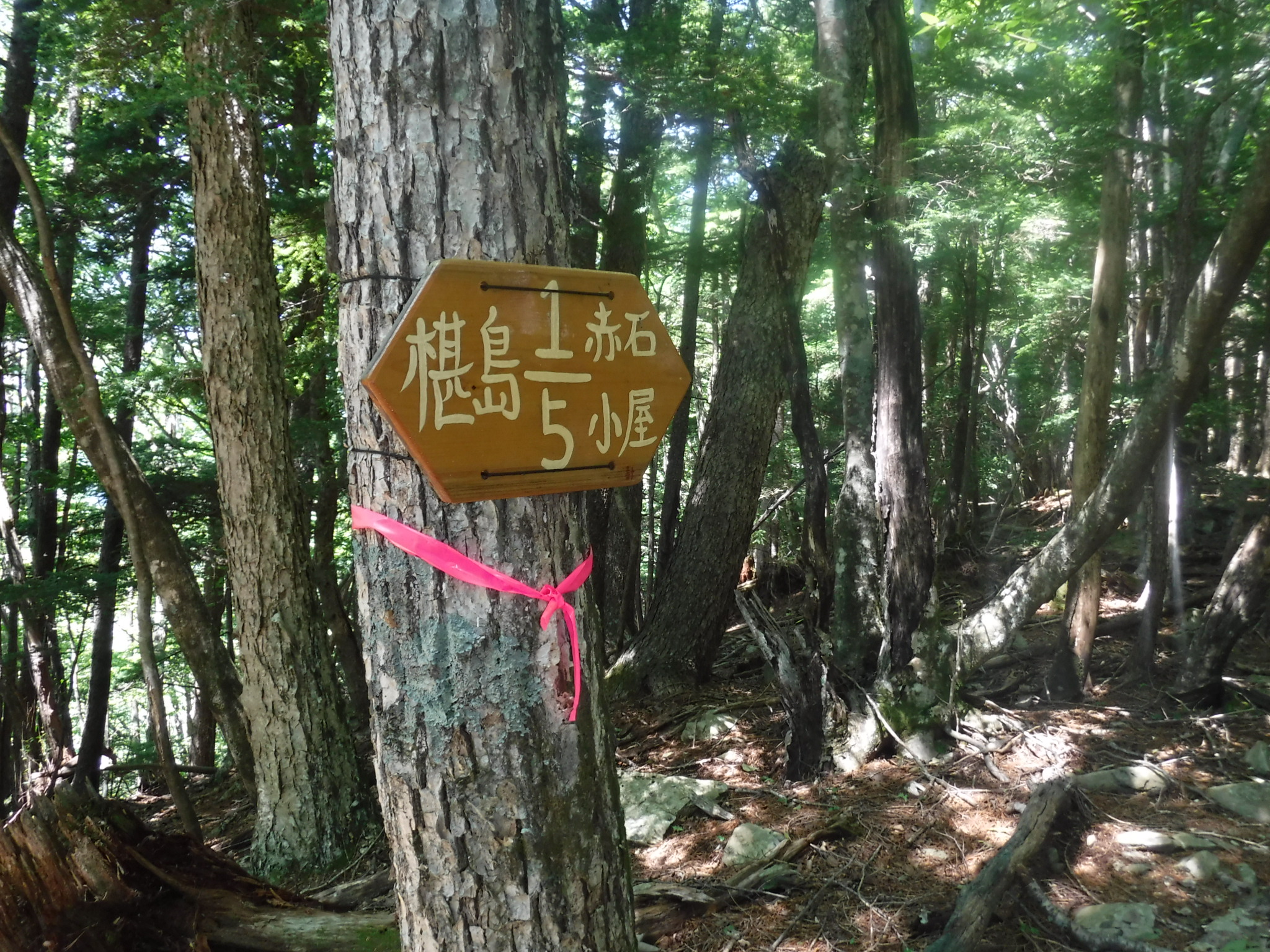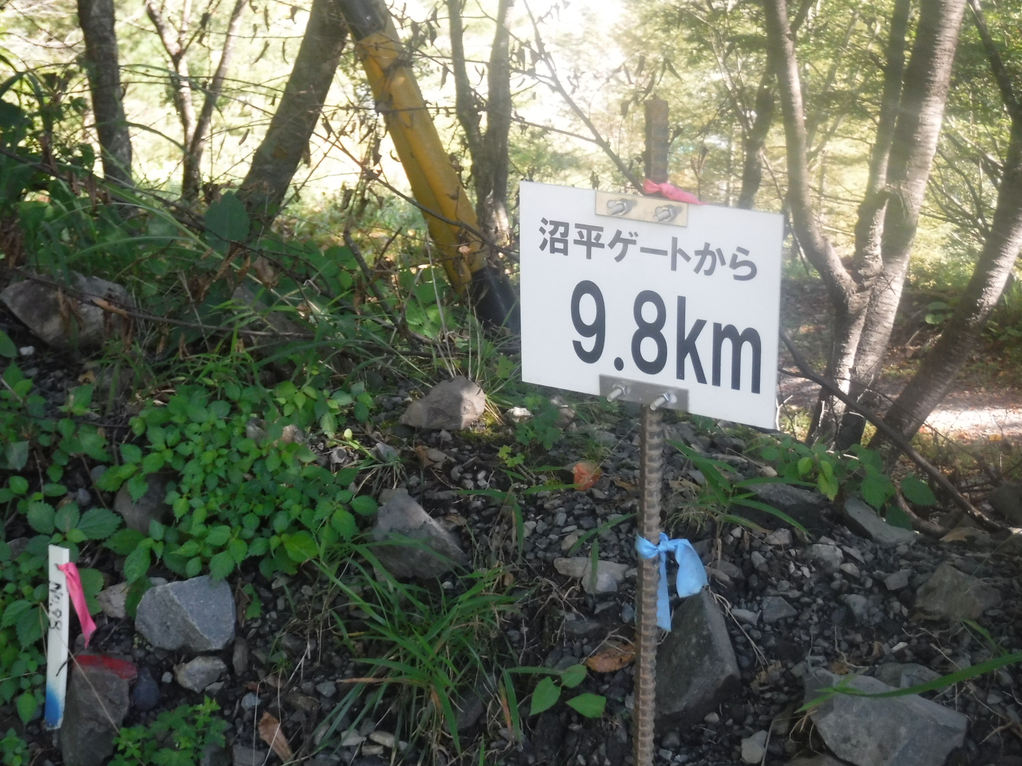 ところどころにゲートからの距離標識が建っています。椹島までは17q、半分以上は来ましたが足パンパンです。 |