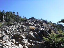 アップダウンの多い岩場を進みます。 |