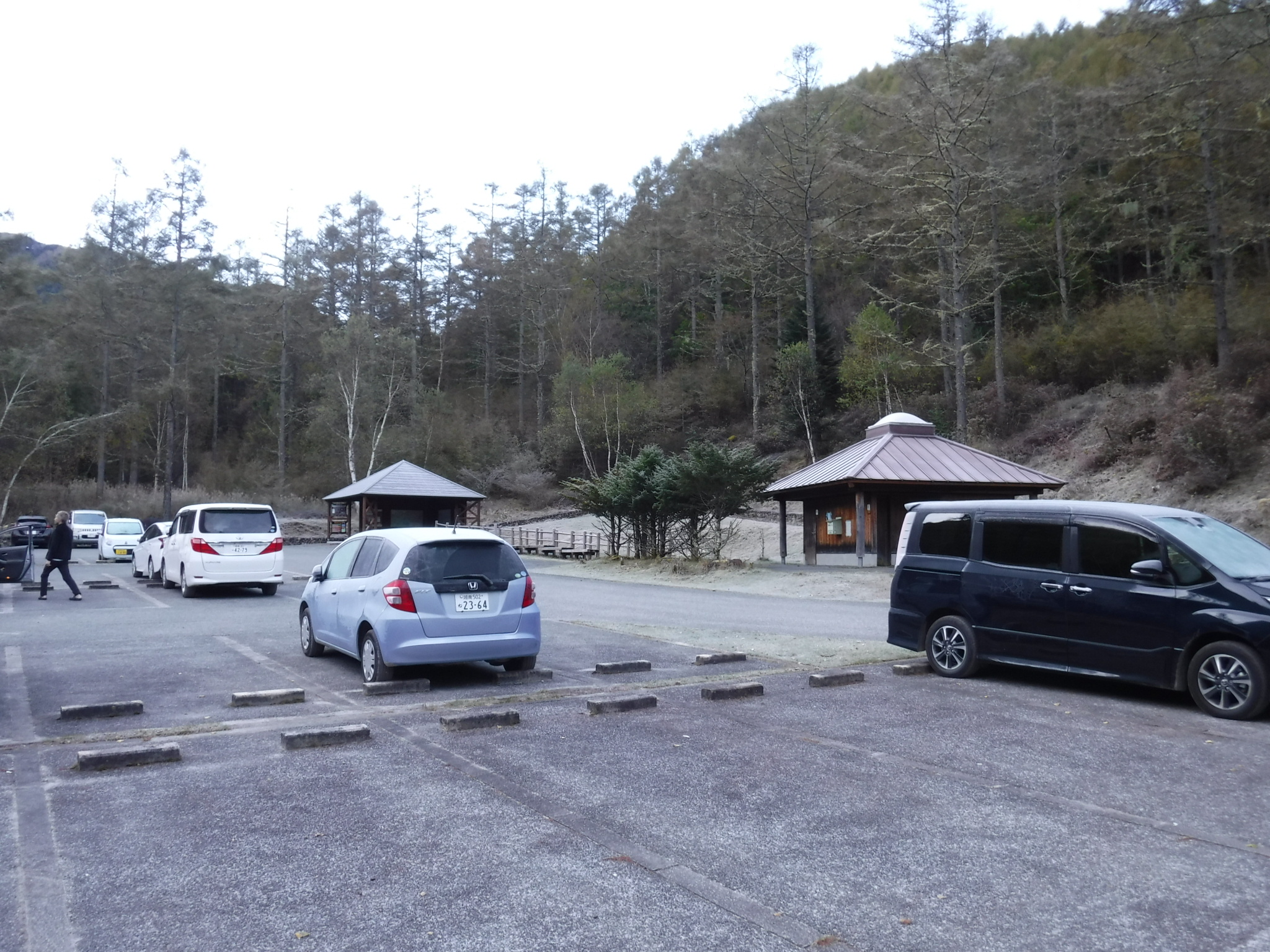 朝7時の毛木平駐車場。