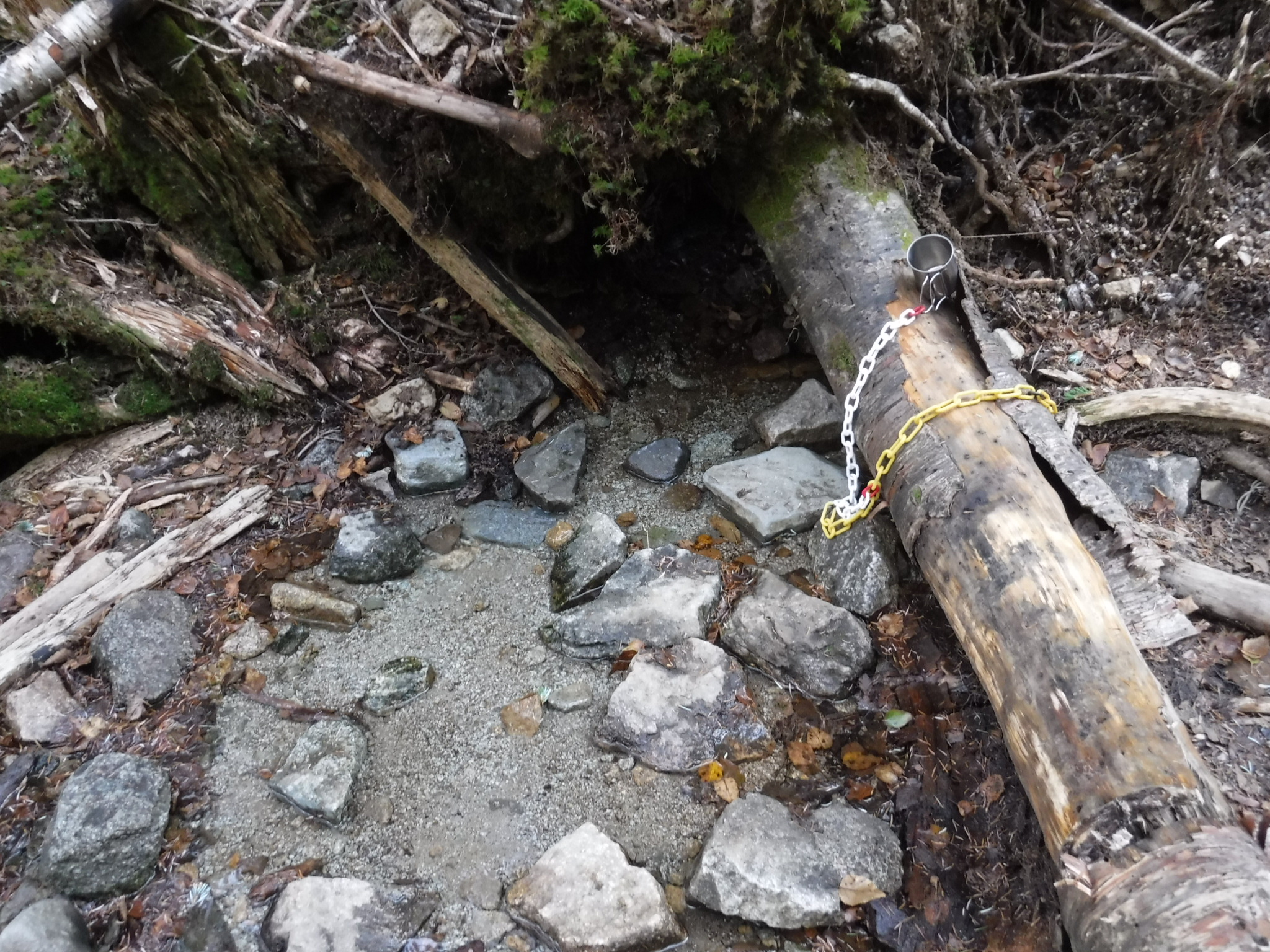 小さな洞から水があふれてきています。ここから千曲川〜信濃川になって日本海につながっているんですね。 |