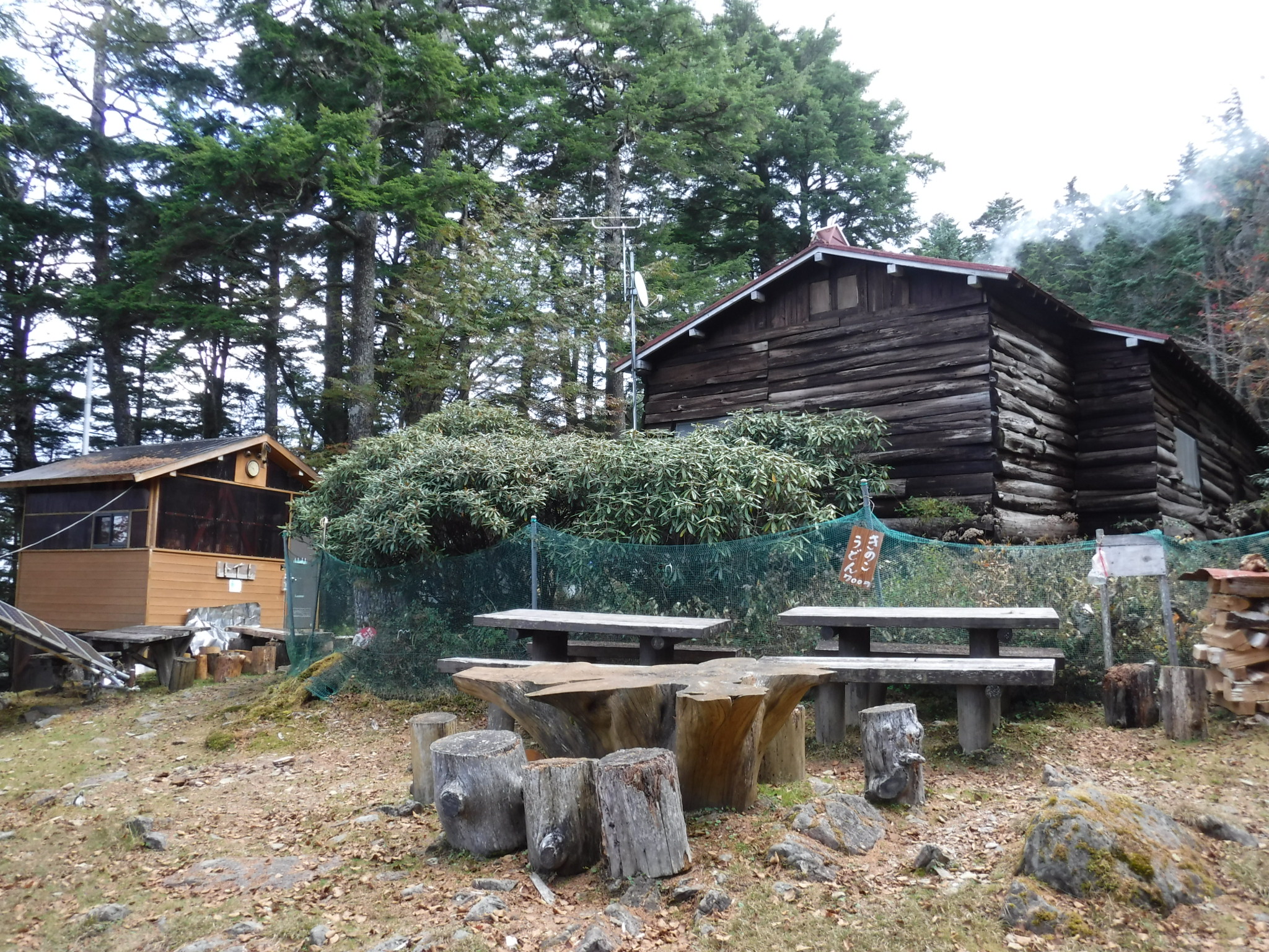 頂上でのんびりした後、甲武信小屋まで下り、ここでコーヒータイム。巻道を通り三宝山へ向かいます。 |