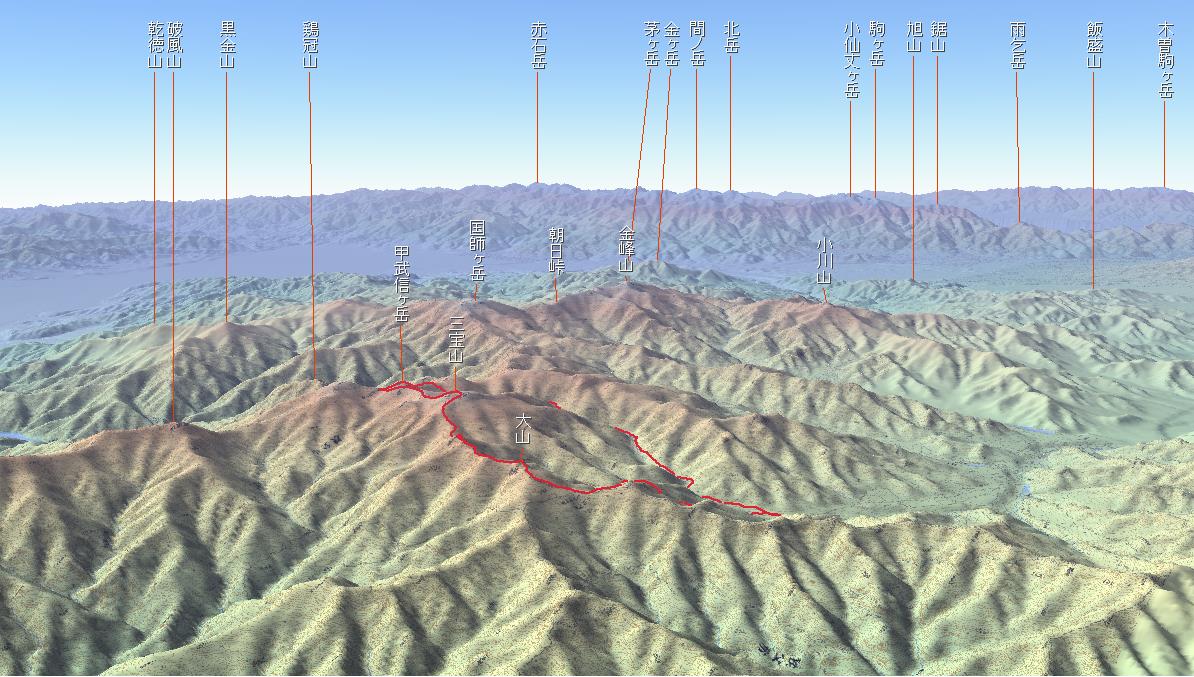 国師ヶ岳、金峰山方面の眺め |
