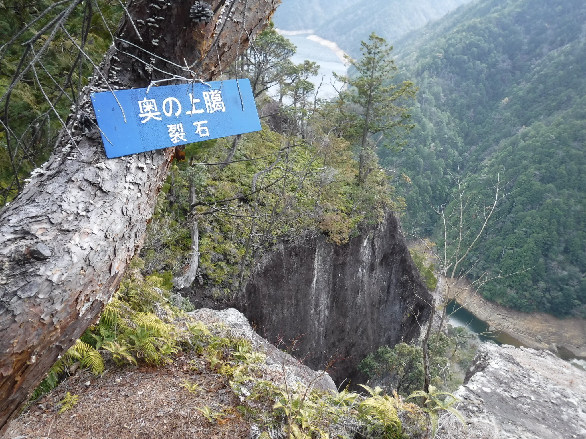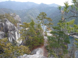 いい眺めです。 木が生えているので多少恐怖心は薄れるのですが岩のでっぱりの上はさすがに怖いですね。ここでランチタイムにしようとしましたが何かあるとまずいのでちょっと先の平らな場所でランチを取ることにしました。 |