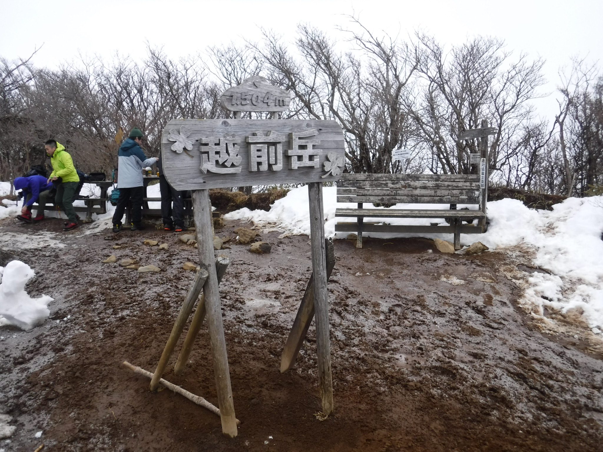 ほどなく越前岳に到着しました。雪は溶けてありません。ここで早めのランチタイム。 |