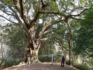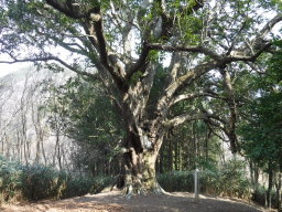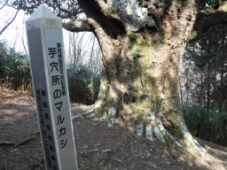しばらく下ると天然記念物の「芋穴所のマルカシ」があります。でかい樫の木です。 |
