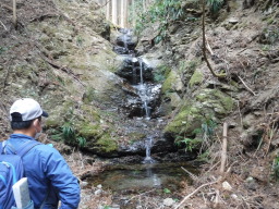 一旦車道に出てしばらく歩くと「宇嶺の滝」入り口があります。ここでちょっと寄り道します。 |