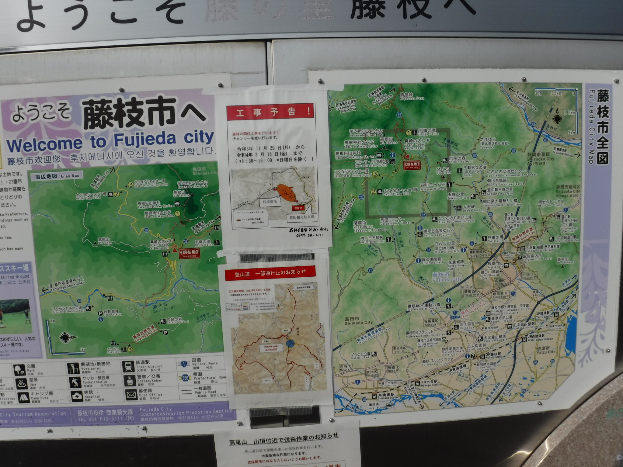 森林伐採の為、一部が通行止めになっているようです。今日は日曜日なので通行止めにはなっていないとの事。 |