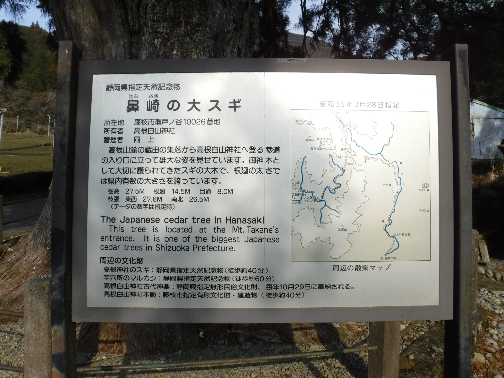 ちょっと歩くと大きなスギが立ってます。 |