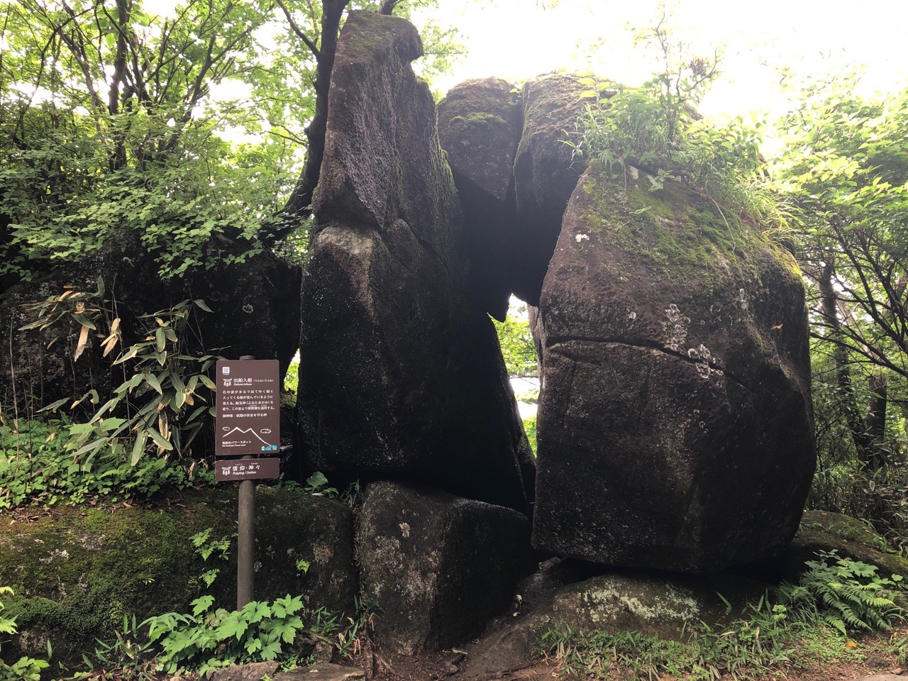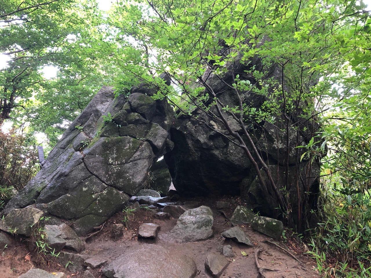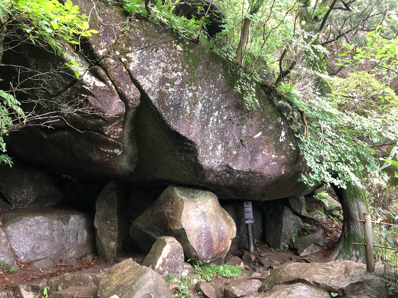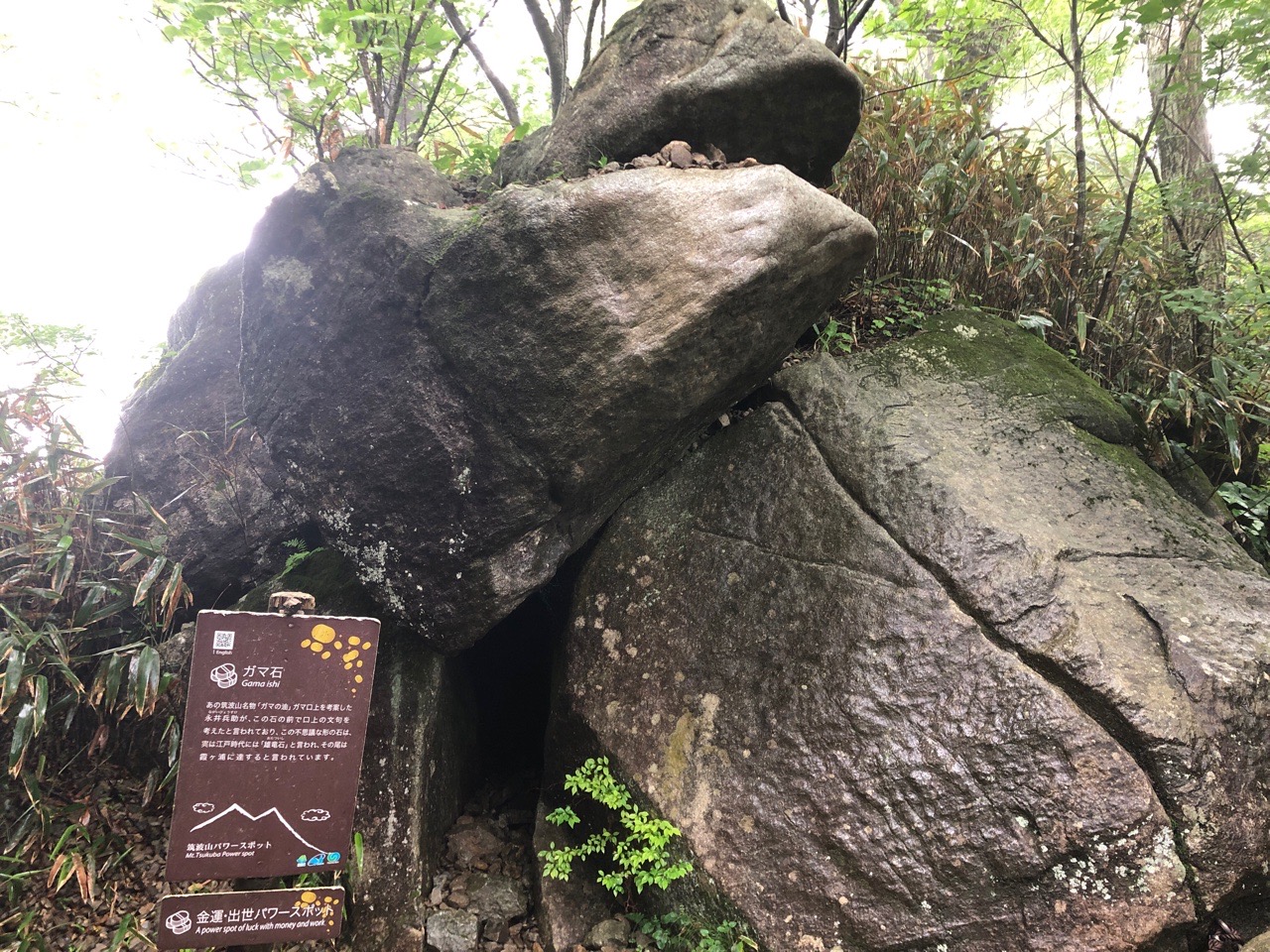 御幸ヶ原まで戻り、女体山に向かいます。その途中にあるガマ石。 |